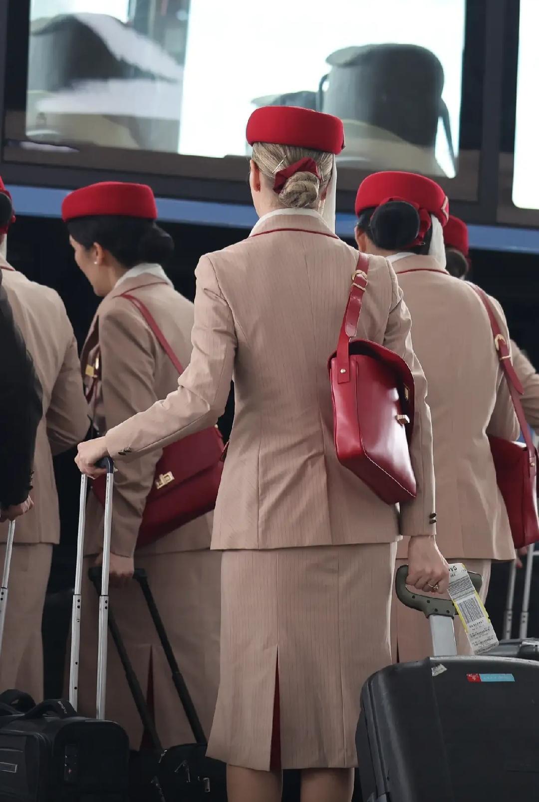 一个身穿红色职业装的阿联酋空姐,瞬间成了机场的焦点。 同行们向她投来了齐刷刷的目光。 高挑的身材,不俗的气质,果然走到哪里都是焦点。 也有网友晒出自己在机场偶遇的空姐,特别是阿联酋空姐,她们会习惯性地戴一条白布,遮住一侧脸庞。 当然在工作的时候,就会拿掉,露出不俗的容颜。
