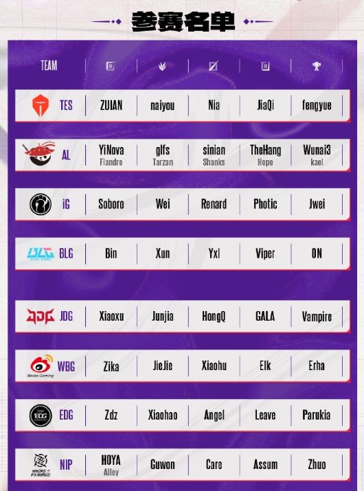 德玛西亚杯各战队出征名单公布!JDG/WBG全主力,BLG中单Knight缺席。