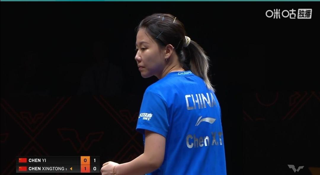 国乒有望包揽总决赛女单四强! WTT香港总决赛女单3/4区1/4决赛。 小将陈熠让1追4,超级大逆转,4:1(7-11;11-8;11-9;11-7;11-2)大胜赛会3号种子、队友陈幸同! 单打世界排名陈幸同第3,陈熠第9。 陈熠首次参加总决赛,即打进四强,进步飞快,可喜可贺! 今晨6:30我发了《女单四强,中国包揽!》作品。只推送了莎莎,曼昱,蒯曼三幅照片。 就是因为3/4区,“二陈”内战,胜负难料! 现在终于可以补齐国乒四将全部照片了。