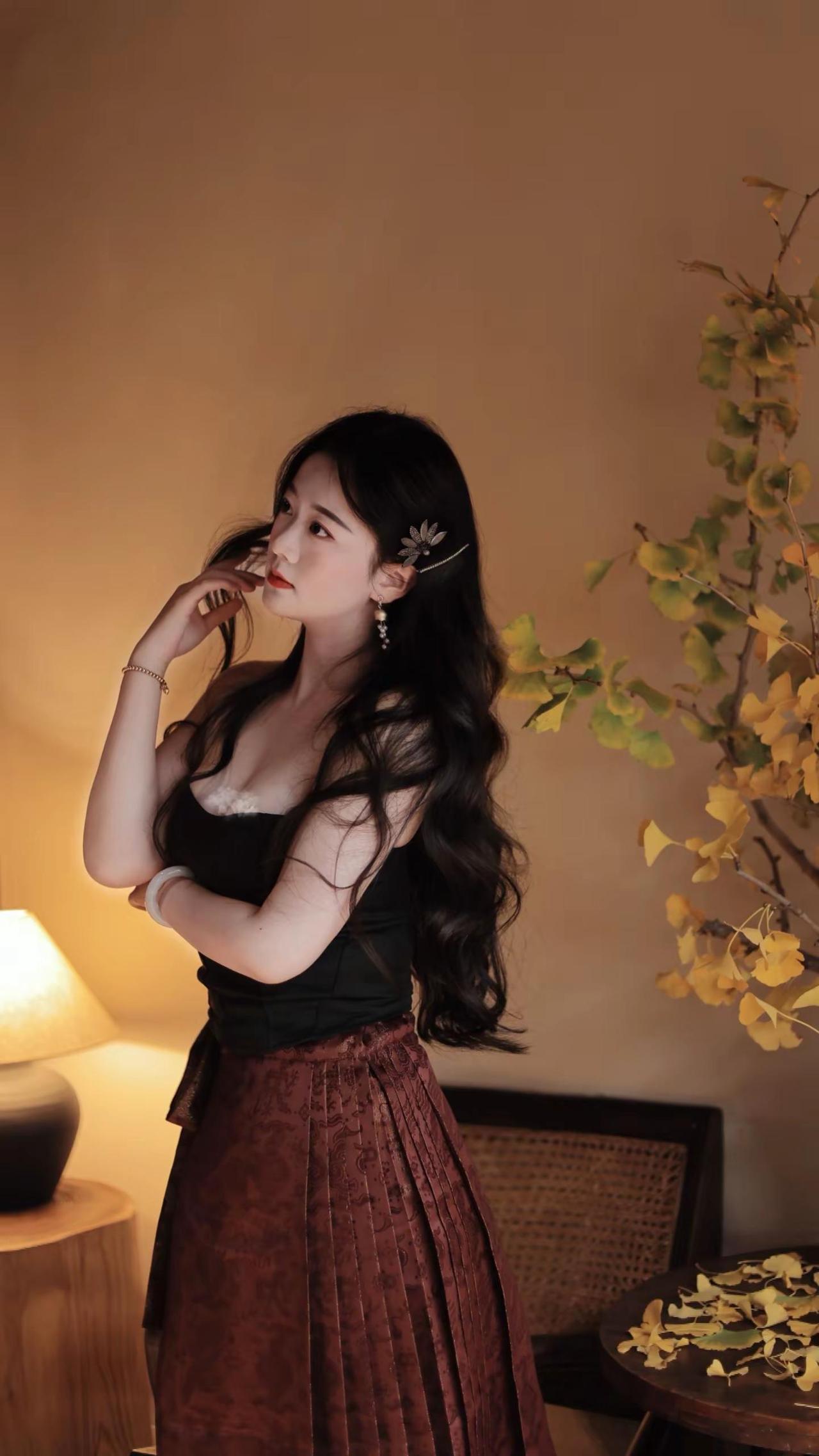 秋叶落,美人倚,伞影斜。
