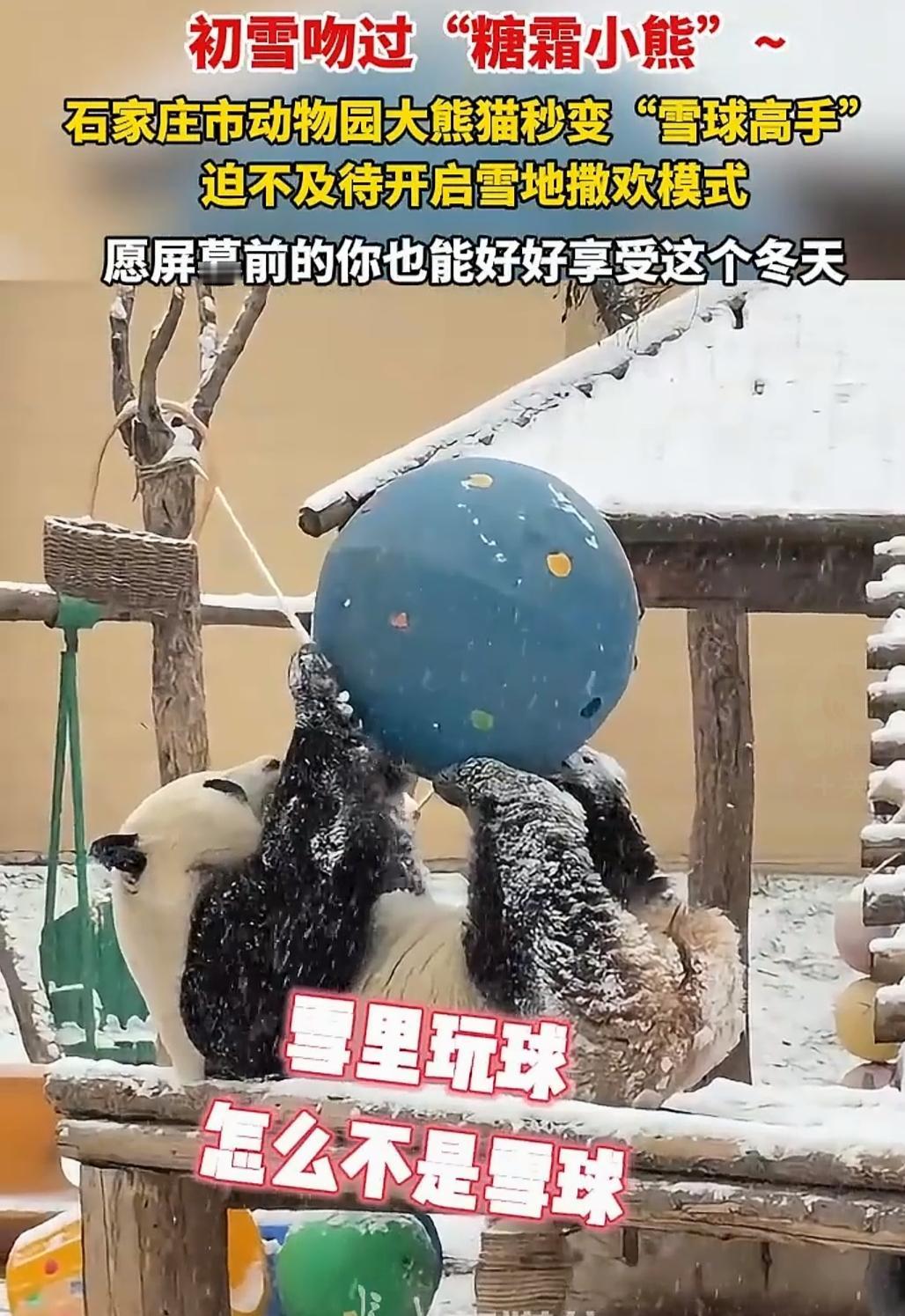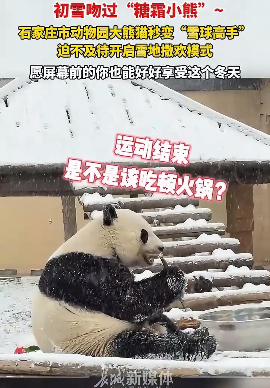 北京的雪下冒烟了,飘到石家庄成了熊猫乐园! 12月12日的华北,被一场大雪承包了快乐。北京的雪自带“仙境特效”,石家庄的雪则″喂饱了″熊猫,南北两头的热闹劲儿直接把热搜给刷爆了。 清晨的北京刚睁开眼,雪花就顺着风往胡同里、宫墙上钻。最绝的还得是故宫,青砖地攒着8℃的地温,撞上-5℃的雪花,融化的水汽裹着雪粒袅袅升起,太和殿、断虹桥到处飘着“白烟”,网友笑称“老祖宗偷偷开了滤镜”。红墙被白雪镶了边,琉璃瓦顶堆着蓬松的雪,连断虹桥那34只石狮子都顶着雪绒帽,嘴角挂着雪粒像偷吃了白糖,凶巴巴的模样全成了憨态。 宫里早被游客挤得满满当当,穿明制汉服的小姐姐冻得鼻尖通红,往红墙下一站,绯红袄子配白雪,随手一拍就是古风大片。摄影大爷们举着相机抢机位,手冻得僵硬也不肯放,就为拍下角楼映在护城河的雪景,那虚实交融的样子,活脱脱一幅古画现世。1000多名工作人员拿着笤帚扫雪,古砖区域不敢用机器,生怕碰坏老物件,清雪又不毁景,这细节里全是讲究。不到中午,“北京雪下冒烟了”就冲上热搜,3100多万网友在线蹲守看紫禁城,评论区全是“这才是中式浪漫天花板”。 北京的雪靠颜值出圈,随着雪花由北南下飘到石家庄,从上午开始,雪花就没歇过脚,街道、屋顶积得厚厚一层,连树枝都压弯了腰,公园人早就冷冷清清。但是,石家庄市动物园的大熊猫可开心了,“国宝”活成了“糖霜小熊”,浑身沾着雪粒还满园子乱窜。饿了就坐在雪地里啃竹笋,两只爪子抱着笋尖,咔嚓咔嚓嚼得喷香,雪沫子沾在嘴边也不管,只顾着埋头干饭。饱餐一顿后立马切换“撒欢模式”,盯上了滚到雪堆里的彩色大皮球,用脑袋顶、用爪子扒。最好玩的是胖胖的身体仰卧,用四只爪子抱着大皮球像极了杂技演员。它把球扒得满身是雪,自己也滚成了个小雪球。还有网友拍到大熊猫突然坐下来发呆,雪花落在它毛茸茸的耳朵上,那憨乎乎的模样,评论区全是“想偷回家养”的玩笑话。 这会儿北京的雪还在飘,故宫的“蒸汽特效”没减退,景山万春亭上依旧挤满了看中轴线雪景的人;石家庄的雪也没停,大熊猫刚歇够又起来扒雪玩,饲养员隔着栏杆递竹笋的画面,暖得人心都化了。 一边是六百年故宫的雪后诗意,红墙白雪里藏着历史的浪漫;一边是国宝熊猫的雪地狂欢,笨笨的模样透着烟火气的可爱。这场大雪把冬日的快乐分成了两半,一半给了京城的古韵,一半给了石家庄的萌趣。不管是刷着故宫雪景的你,还是对着熊猫傻笑的我,都被这雪天的幸福给包围住啦!