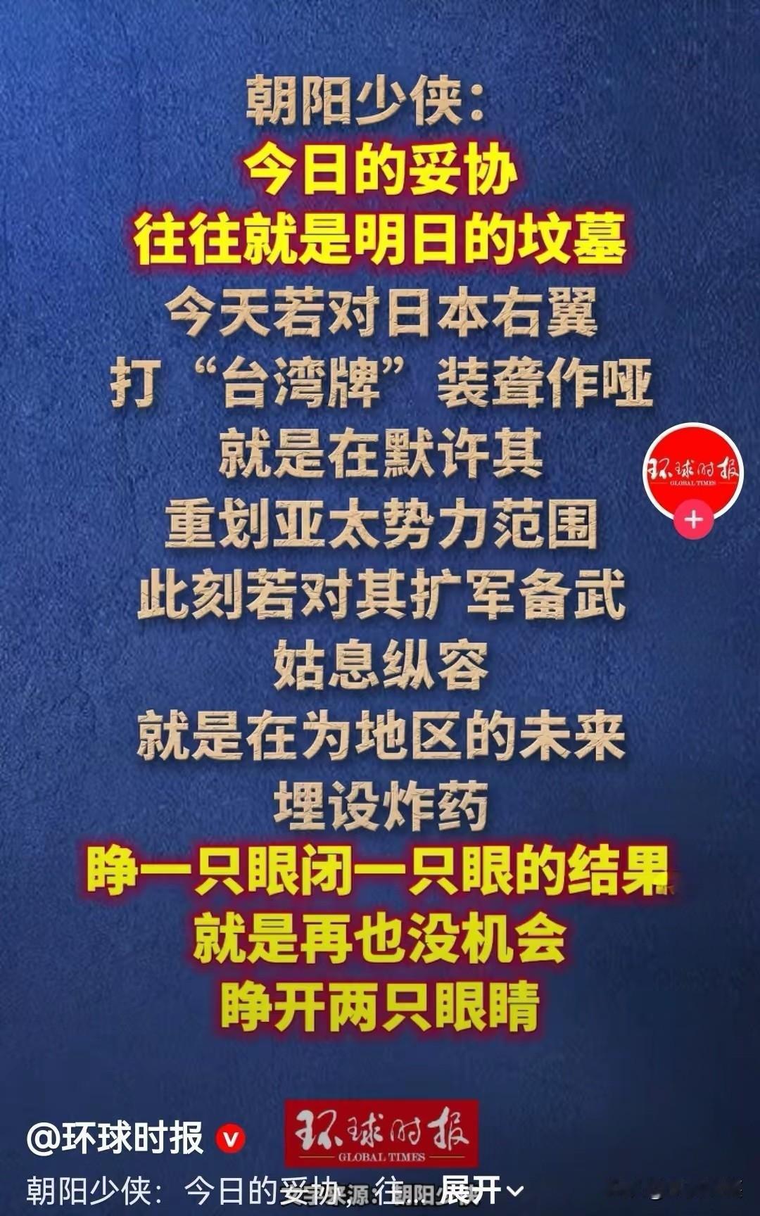 环球时报之朝阳少侠,说出了亿万中国人的心声。