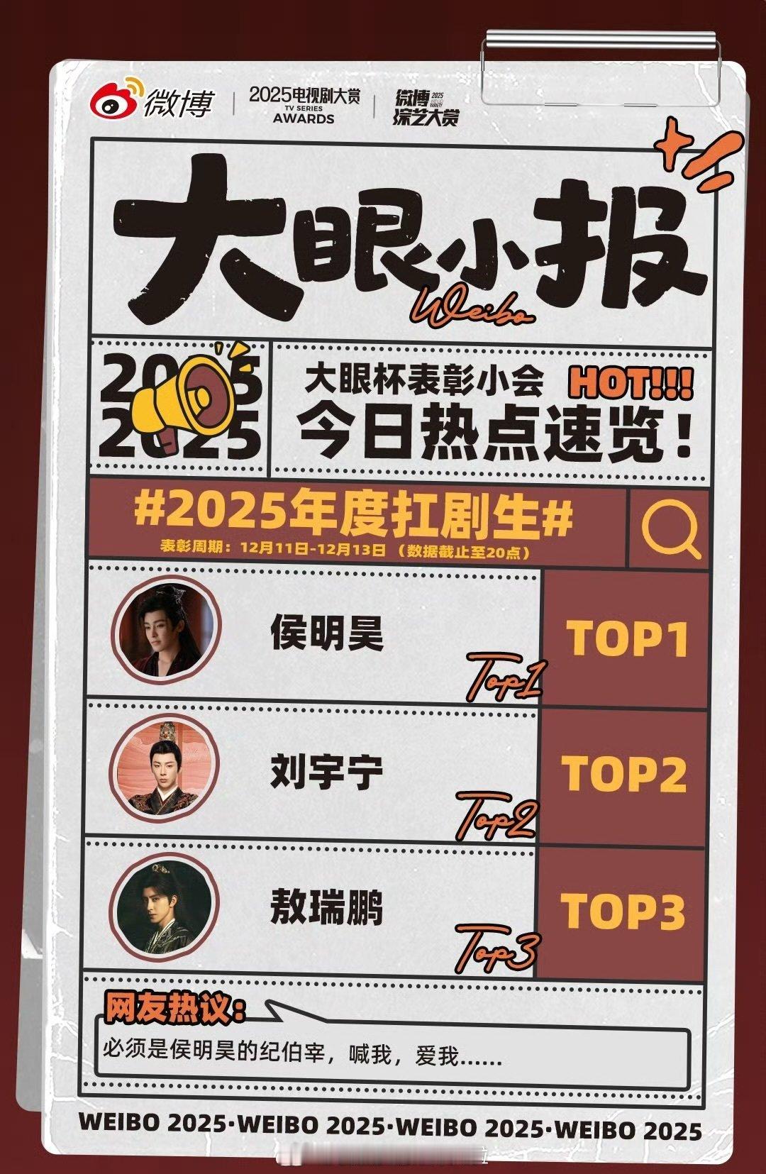 微博评选的2025扛剧生:侯明昊、刘宇宁、敖瑞鹏,符合体感吗? 跑男后期把敖瑞鹏小号翻遍了刘宇宁粉丝捐赠了一条宇宁路