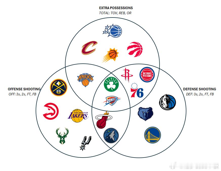 本赛季投篮效率、限制对手投篮效率、拼抢额外进攻回合排名前10的球队👇-投篮效率包含三分球、两分球、罚球和快攻得分;-防守数据包含限制对手三分球、两分球、罚球和快攻;-额外进攻回合包含利用对手失误、拼抢篮板增加回合数。湖人投篮效率排名前10,独行侠限制对手投篮排名前10,雷霆和凯尔特人3项数据均排名前10🧐新赛季篮不住