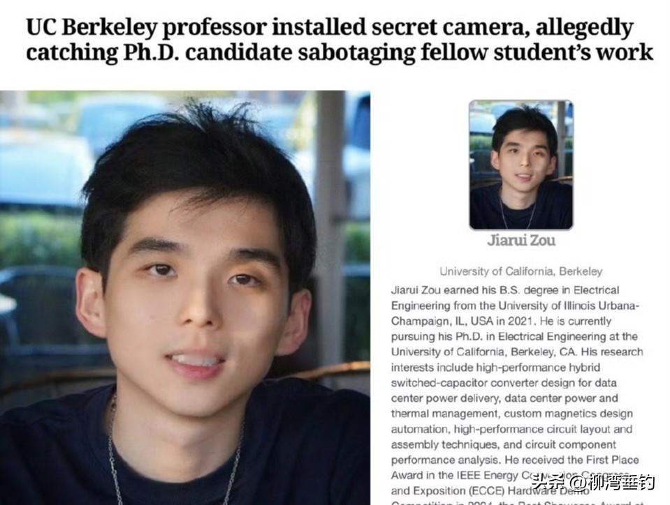 加州大学伯克利分校的那个博士生,彻底把自己毁了。 实验室里两年间不断有设备损坏,教授起疑后放了隐藏摄像头。结果拍到同门的邹家睿用工具猛砸电脑,火花四溅的画面全被录下。 他本科在UIUC读电气工程,来伯克利读博期间拿过IEEE论文奖和能源转换竞赛一等奖。偏偏要对同门下狠手,三台电脑毁掉四万六千美元,还让人家累积数月的实验数据全没了。受害者可能因为数据丢失延毕一年,签证和工作计划全被打乱。 高学历和学术光环从来没法和人品划等号。读书读到顶尖却容不下身边人,这种心态比知识缺陷更可怕。他或许在学术竞争里感到压力,但选择毁掉别人心血来获取优势,已经脱离了学术道德的底线。 海外留学生群体常被贴上“内卷”“功利”的标签,而这种极端案例又会加深外界刻板印象。其实大多数学生都在默默努力,只是个别失控行为总会掩盖掉群体的正常状态。 学术道路本来就该有合作有竞争,但竞争不该是你死我活的互害。用摧毁同门的方式来获取优势,最后反噬的是自己整个学术生命。