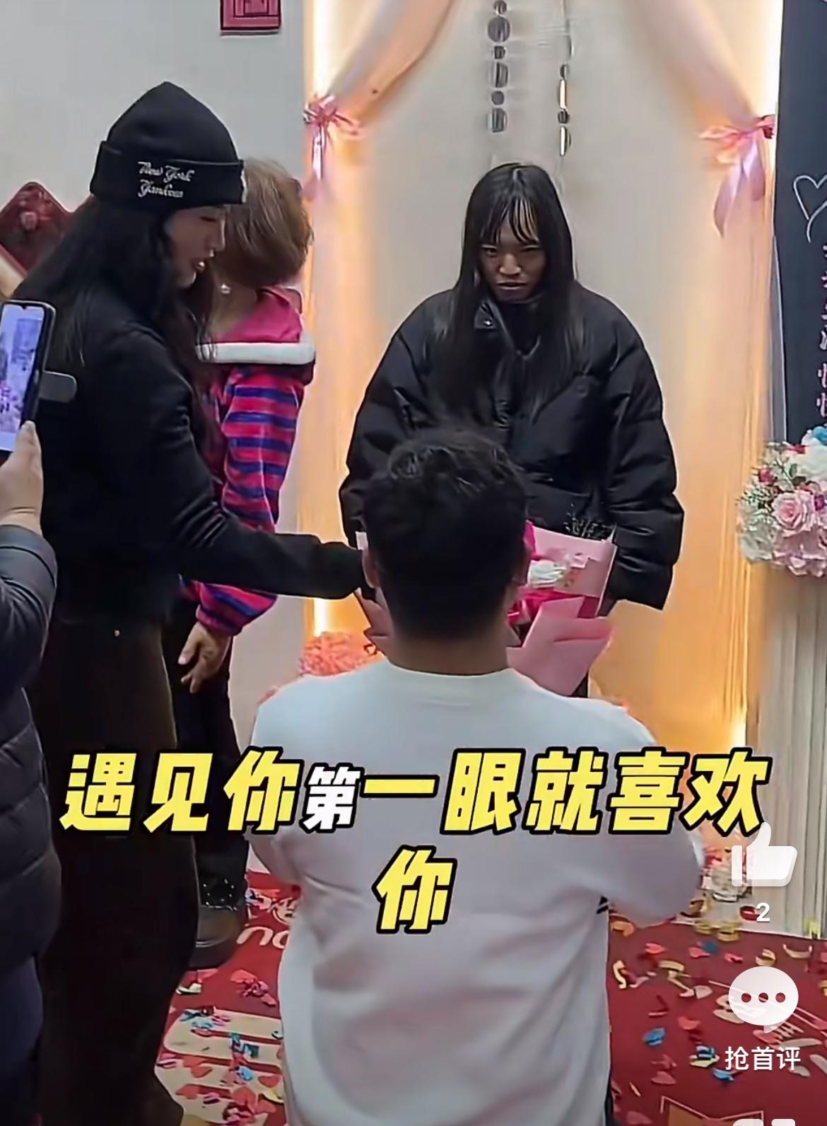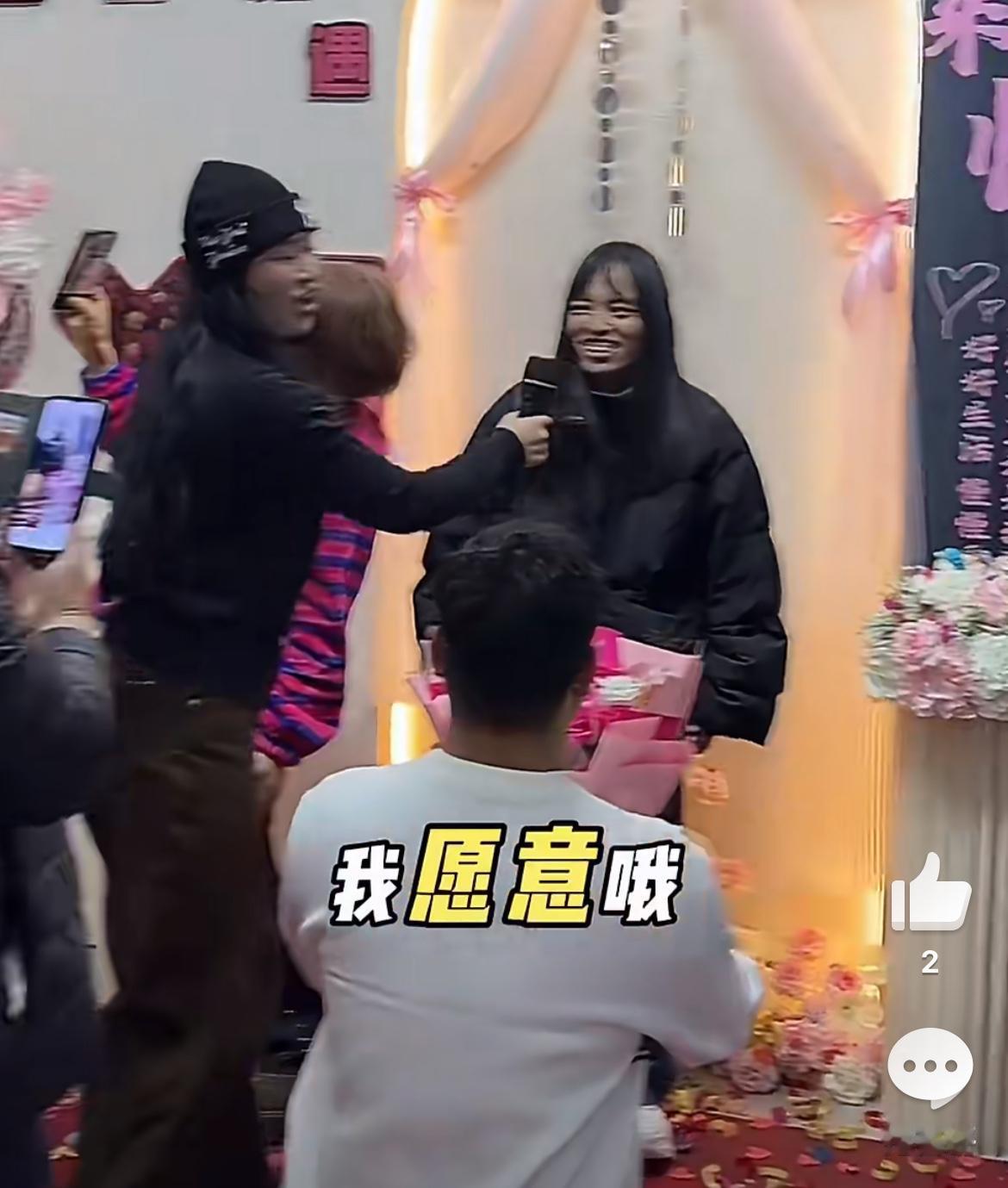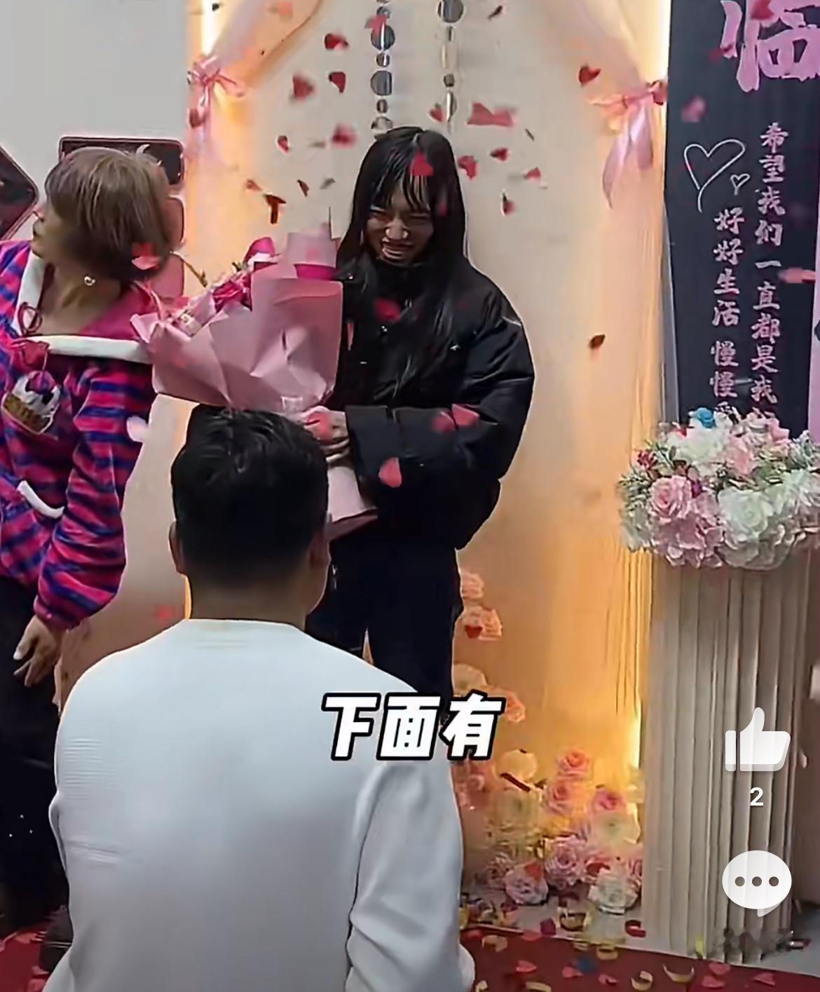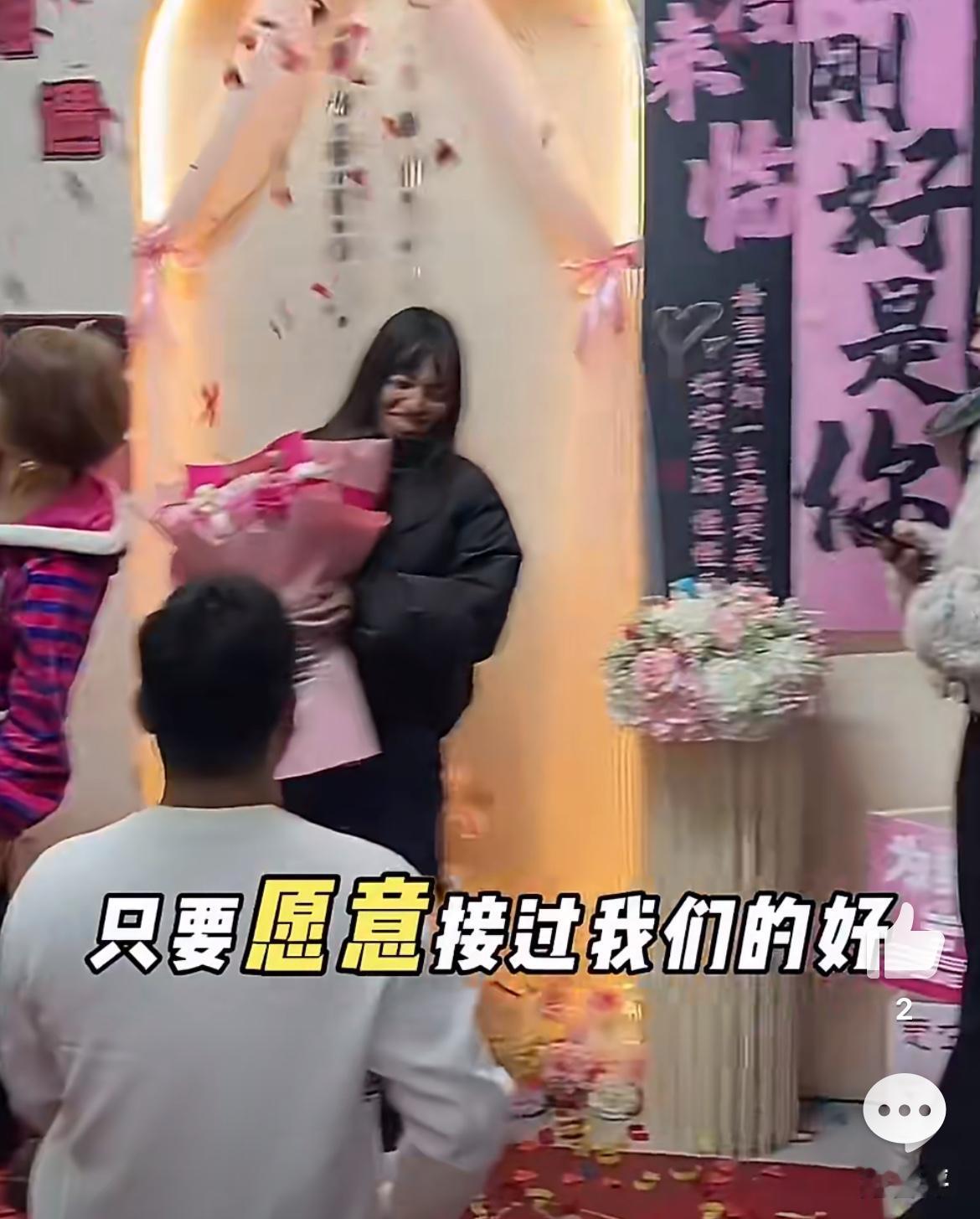 这个女孩一定有什么过人之处吧,让这个小伙跪地求婚。看得出来,这个求婚现场是花了一番心思的,小伙求婚是认真的,手捧着鲜花,准备了求婚的戒指,周围观礼的人是真诚的。面对小伙的求婚,女孩也大声说愿意。祝小伙幸福,找到真爱了。求婚 男士求婚