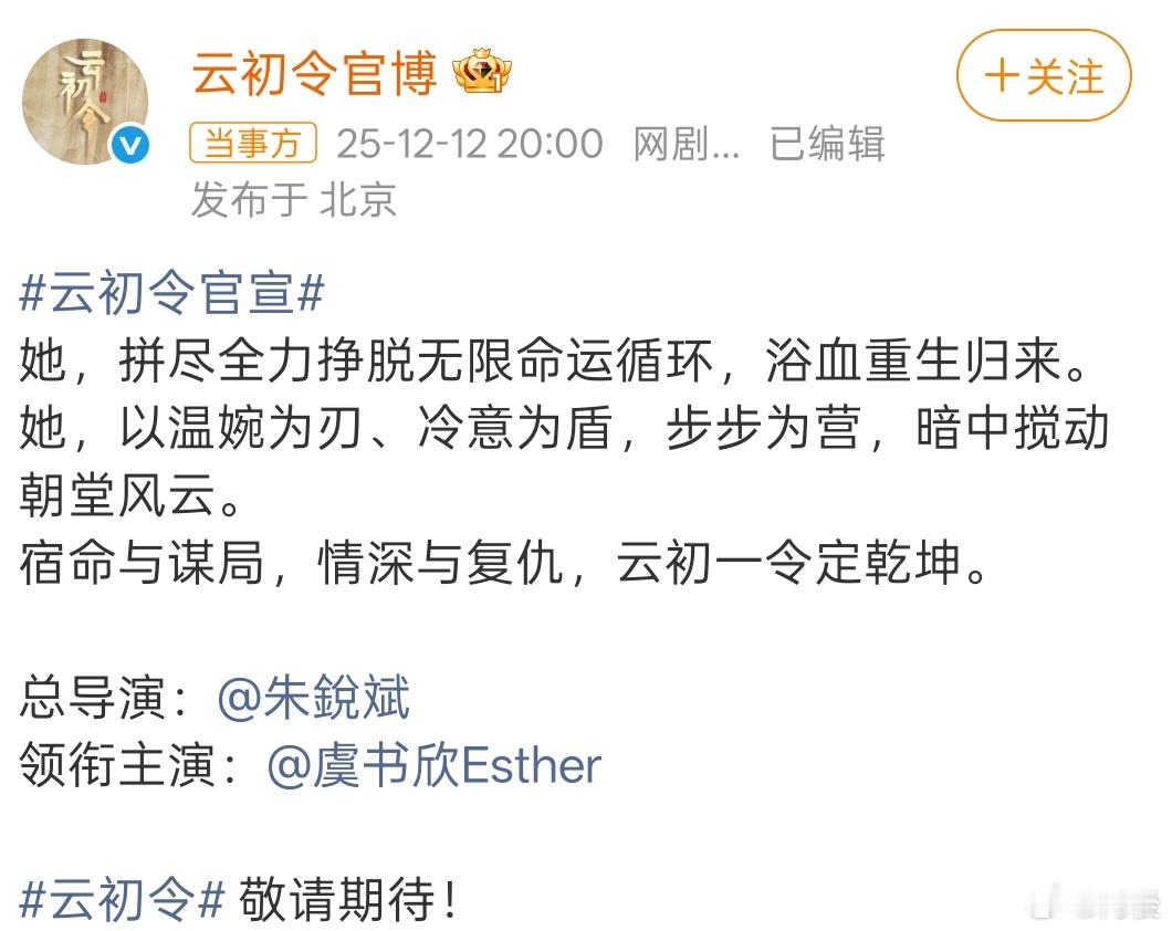 云初令官宣虞书欣这么说来虞书欣是真的复出了而且今天双轨也播了,那些事还是过去了