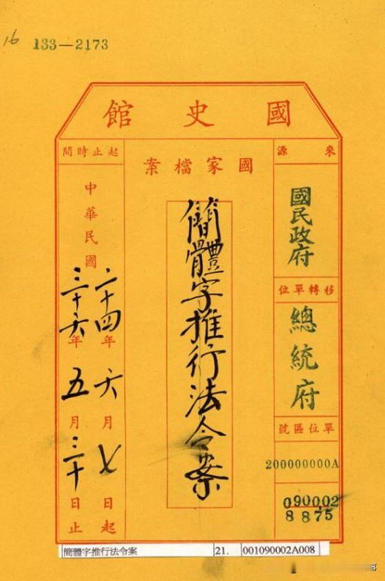 民国时期蒋介石政府推行简体字 首鼠两端蔣光头! 现在大陆还有一些二愣子跟着台湾说法认为繁体字是正体字是正统,污蔑简体字是残体字。事实上从秦始皇书同文后,在历史变迁中,一直都是繁简并用,各朝代的著名书法作品都能看出来。 清末民初,因为国家积弱,民智未开,一些文人志士出于鼓励国人学习需要,主张推行全面简体字,对全民进行大规模扫盲。1935年民国政府发布简体字推行法令,推行不久,因为抗战全面爆发,就没能实行,抗战结束后,蒋介石计划重新推进简体字运动,但随着国民党攻打解放区又搁置了,于1947年停止该法令。 蒋介石败逃台湾后,看到大陆大力推行简体字运动,他于50年代中期要求台湾全面推行繁体字,为了区别大陆争正统,将繁体字规定为正体字,污蔑简体字是残体字,“爱无心”这些污蔑说法就是从那时候开始的。 蒋介石做什么都是为了个人政治利益,很少从国家老百姓角度出发,所以他逃到台湾写了几十年反思日记,还是没想通他为什么输。