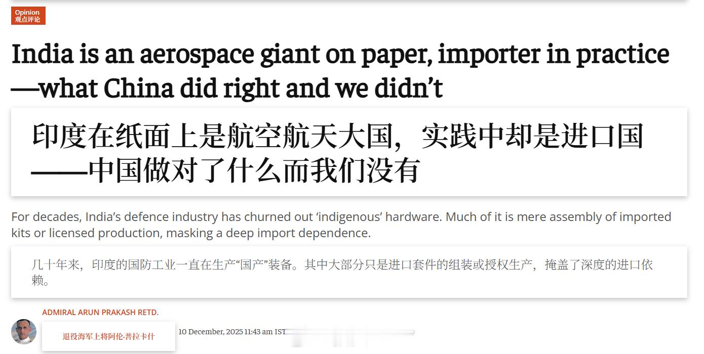 时隔一年后终于有印度大佬承认中国有六代机了退役海军上将、前海军参谋长阿伦 普拉卡什在The Print 上发表了这篇反思文全文就不用发了,鉴定为陈词滥调,AI给个题目也能写出来烽火问鼎计划武器装备