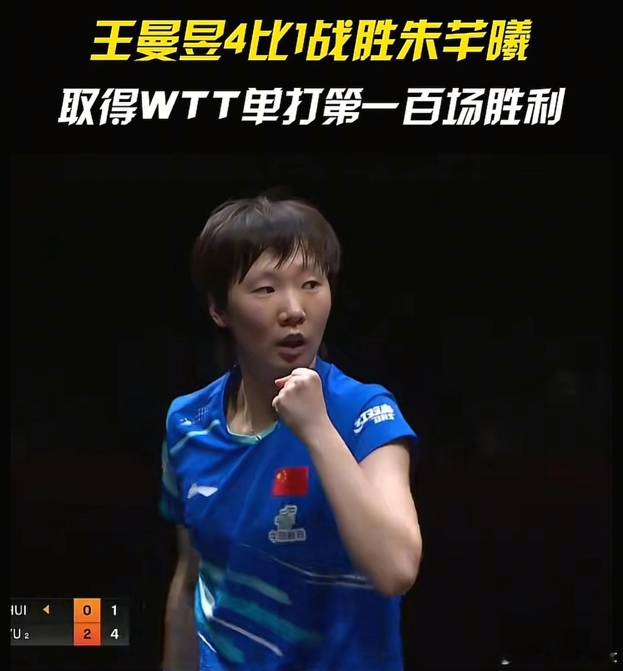 百胜达成! 🏆】此前种种,皆为序章;百胜时刻,荣耀加冕!在刚刚结束的2025 WTT香港总决赛女单1/4决赛中, 以4-1击败朱芊曦,强势晋级四强!这一胜,不仅仅是一场比赛的胜利,更是她在WTT单打赛场的第1️⃣0️⃣0️⃣场胜利!从初出茅庐到中流砥柱,每一个胜场的背后,都是无数次挥拍的汗水和对胜利极致的渴望。你是球台前的解题大师,也是赛场上的钢铁战士。💯分的热爱,换来💯胜的辉煌!恭喜曼昱解锁新成就,向着下一个巅峰,继续冲!