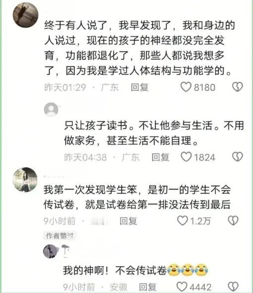 现在的孩子连传试卷都卡壳?一位老师的吐槽引发千层浪。不少家长破防,但更多教育工作者沉默点头。这届孩子的动手协调能力,确实亮了红灯。 有人归因保胎技术救活了本应淘汰的娃,但真相或许更复杂。过度保护,屏幕绑架,体育课变自习……孩子活在无菌环境里,连跑跳传接都成了挑战。体育老师苦笑,跑步像提线木偶,坐位体前屈负数一堆! 但骂孩子“笨”不公平。教育专家指出。问题不在孩子,而在成长土壤。家庭过度代劳,学校重文轻体,连课间10分钟都被压缩,哪来机会练协调性?有校长呼吁!劳动课和体育课不是摆设,生活能力才是真正的起跑线。