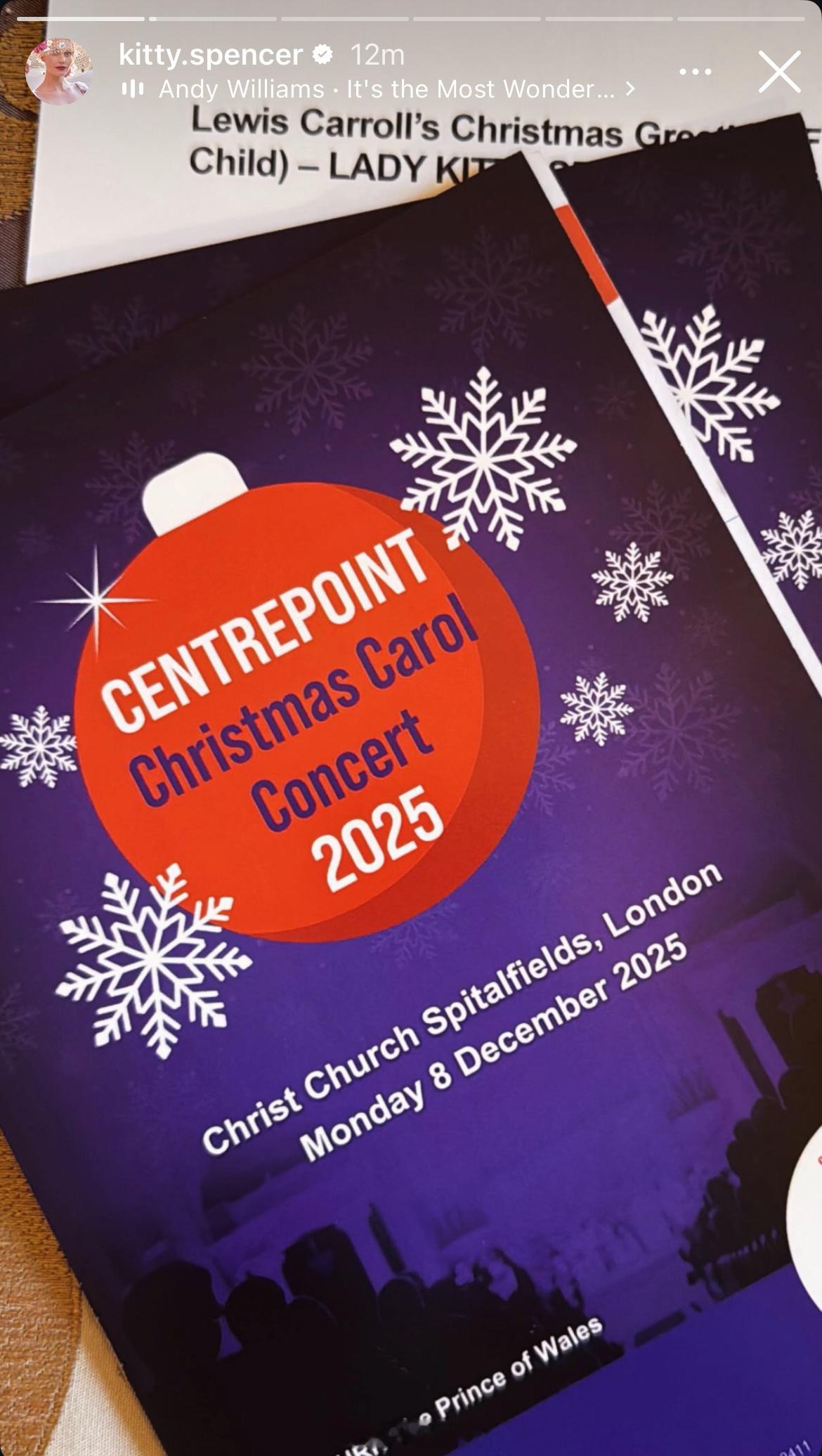 威廉王子 今天威廉王储的表妹Lady Kitty Spencer在她的IG上发图分享她曾于12月8日在伦敦参加过威廉王储赞助的无家可归慈善机构Centre Point组织的圣诞颂歌音乐会,她近年是有支持这家慈善机构。