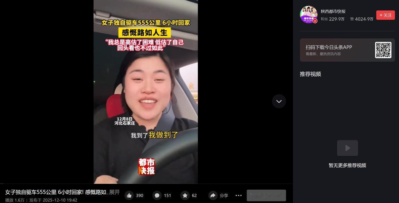 人间清醒!河北一女子为了挑战自我,竟然独自驱车555公里,花了6小时回家!当达到
