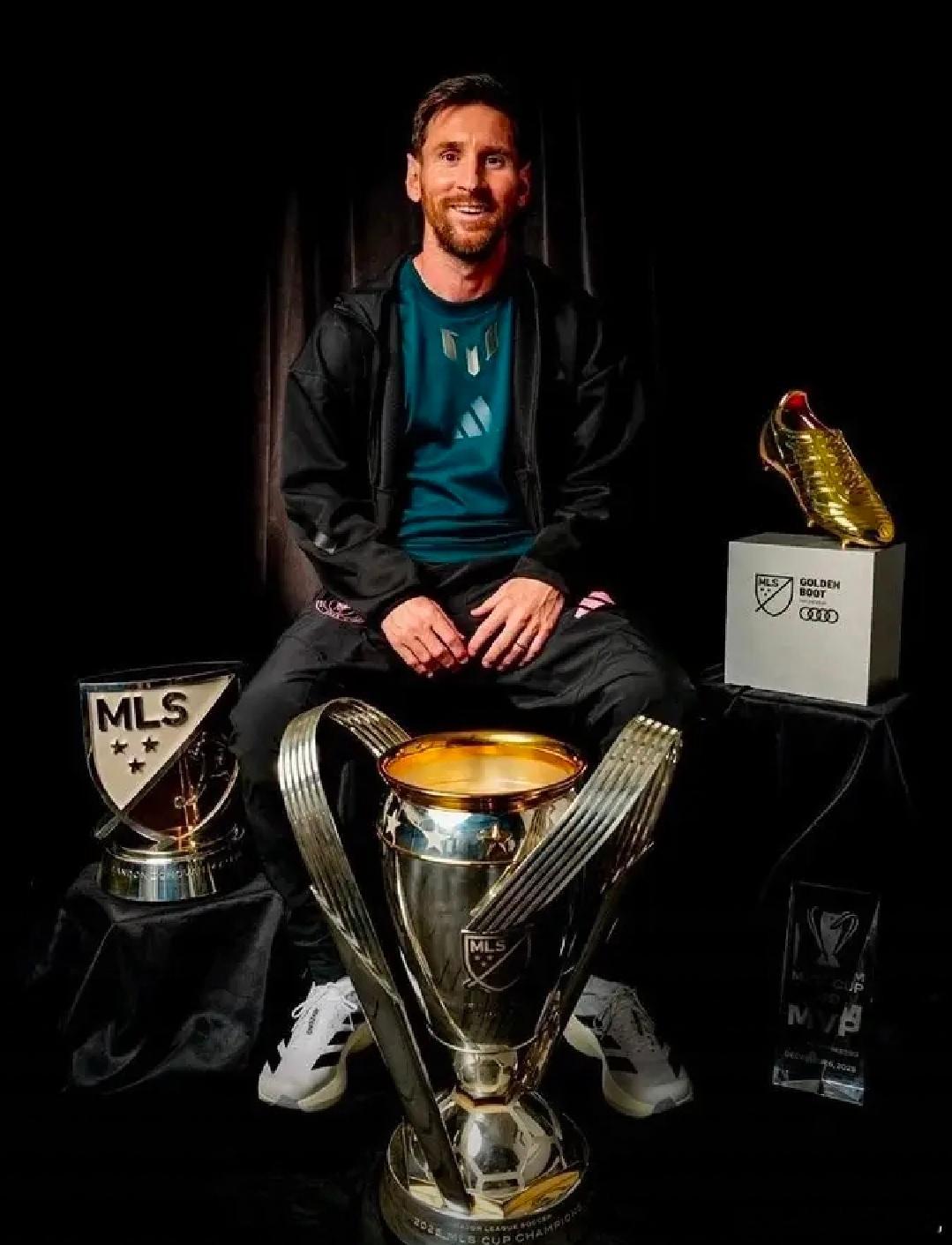 梅西晒三冠合影,照片疯传网络近日,一张梅西展示本赛季三大荣誉的照片在社交平台上迅速走红,再次引发全球球迷热议。这张于12月11日发布的照片中,梅西面带笑容,手捧三项重量级奖杯——2025赛季美国职业足球大联盟(MLS)金靴奖、MLS年度最佳球员(MVP)奖杯,以及象征联赛最高荣誉的MLS总冠军奖杯。这一“三冠同框”的画面不仅彰显了他无与伦比的个人实力,也见证了他在北美赛场的辉煌成就。照片一经发布便迅速刷屏,无数球迷纷纷留言致敬这位被广泛誉为“足球史上最伟大球员”(GOAT)的传奇。有网友激动地写道:“真正的GOAT就在这里!”另一位球迷感慨道:“加入一支垫底的球队,却带领他们首夺冠军——能做到这一点的,只有梅西。”还有人直言:“迈阿密国际的历史,是梅西一手书写的。”就在照片发布前一天(12月10日),MLS官方正式宣布梅西荣膺2025赛季联盟最有价值球员(MVP)。凭借这一奖项,梅西成为MLS历史上首位连续两个赛季蝉联MVP的球员。回顾整个2025赛季,梅西在28场联赛中狂轰29球、送出19次助攻,以近乎完美的表现带领迈阿密国际队历史性地首夺MLS总冠军。他也毫无悬念地将金靴奖收入囊中。如今,同时集齐MLS金靴、MVP和总冠军这三大顶级荣誉,不仅是对梅西个人能力的极致肯定,更标志着迈阿密国际这支年轻球队迎来了属于自己的高光时刻——2025年的MLS冠军,正是他们队史上的首个国内顶级赛事桂冠。梅西用实力证明:无论身在何处,他都能创造历史。