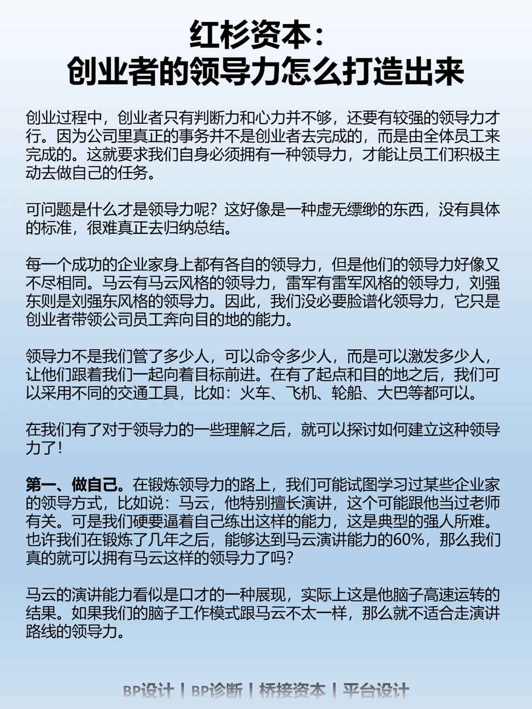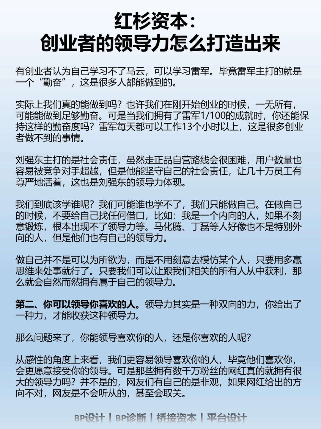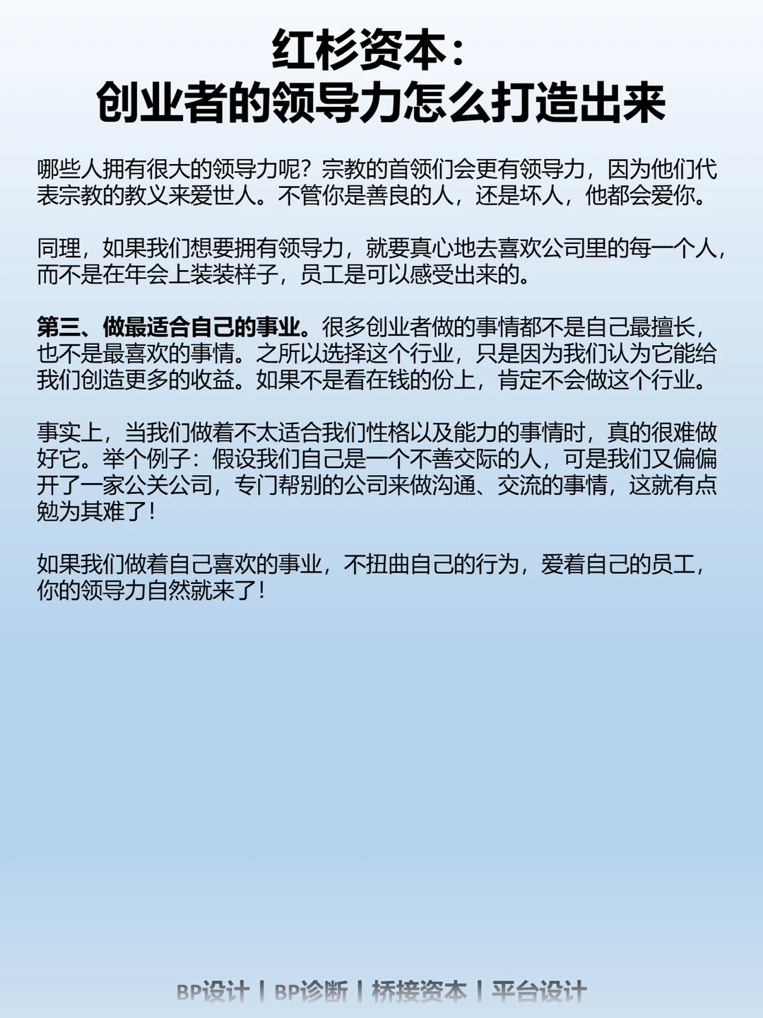 一个好的创业者需要准确预测未来的发展趋势,和未来的挑战。这样,您就能及时储备能量和资源,来应对未来的问题。