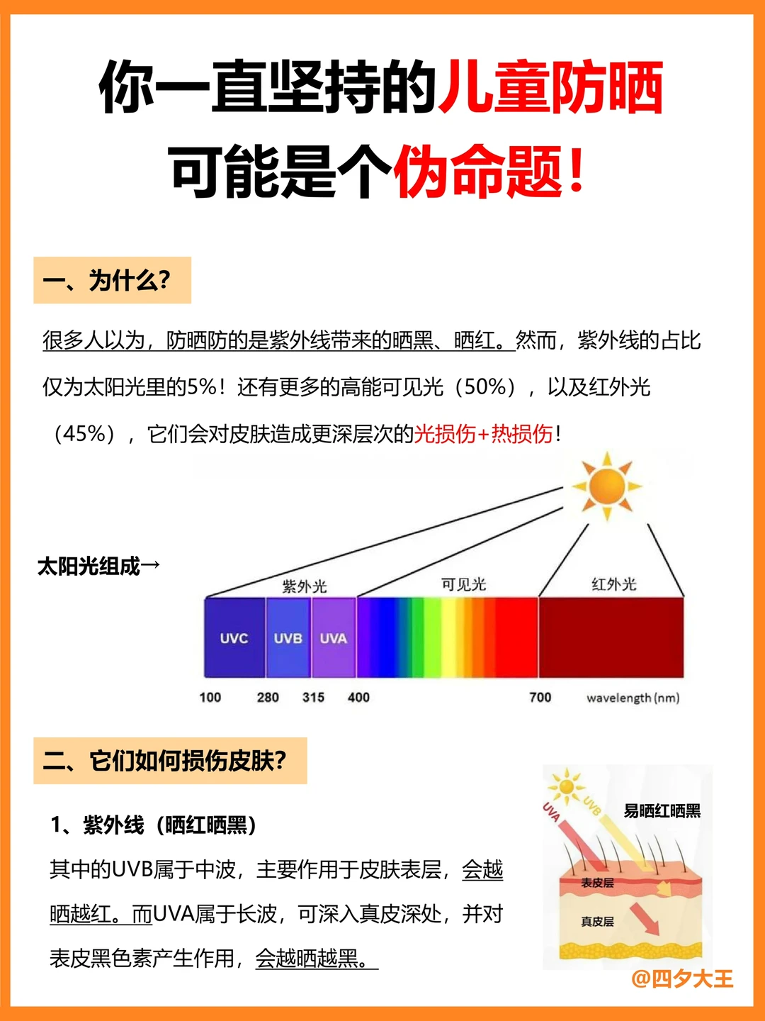 阳光中除了紫外线,还有95%可见光&红外光会对皮肤造成“隐形威胁”。对儿童来说,这些光热损伤比晒黑更可怕😰!大部分人说的防晒,只防紫外线,而不防可见光&红外线,于是就出现了防晒还是被晒伤的情况!