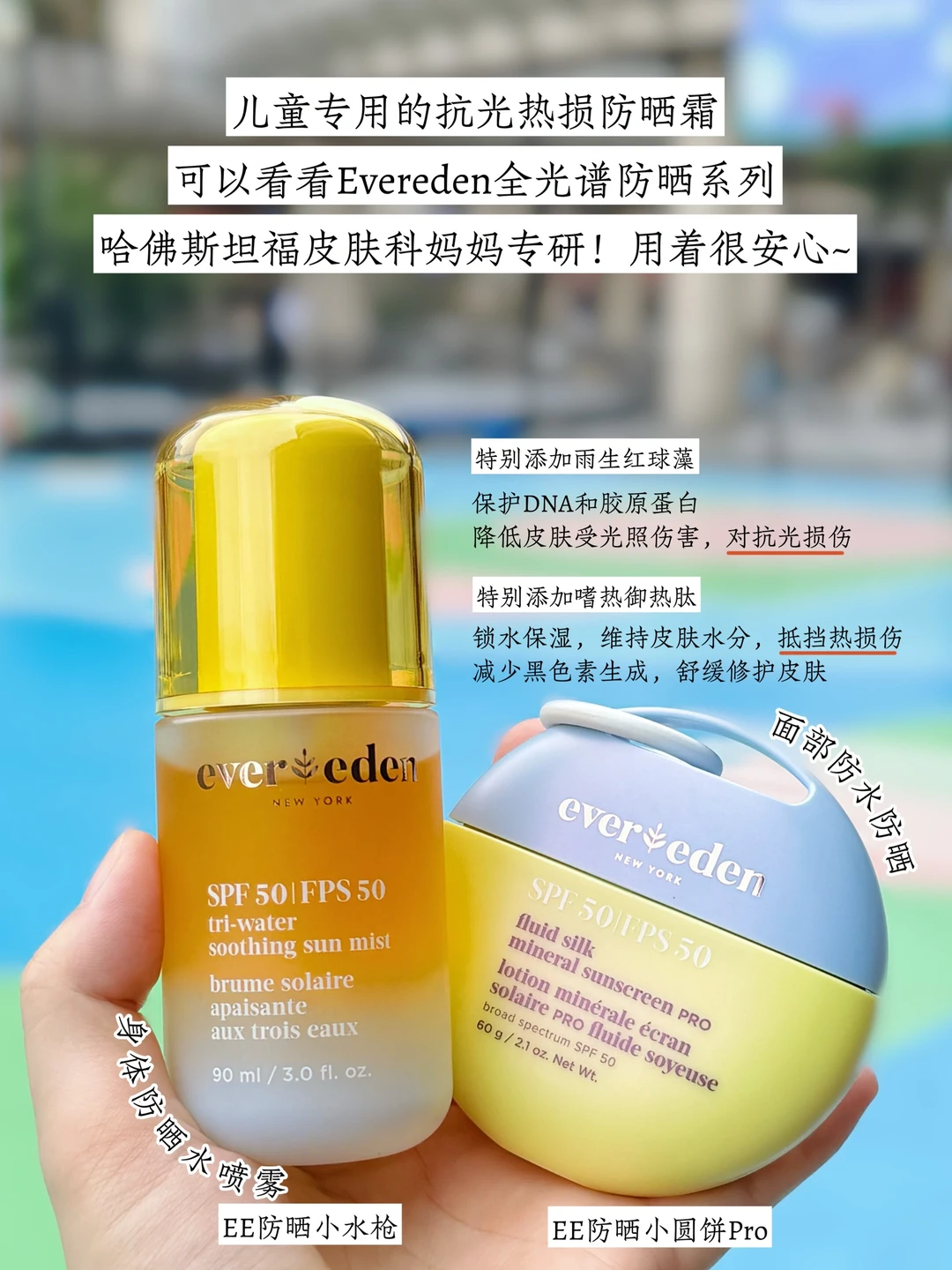 🔹抗光热损这方面,成人的防晒霜已很成熟,但在儿童防晒霜里,却少有听闻。作为常户外的妈妈,我换了好几款儿童防晒,就Evereden真的在用心研发抗光热损的防晒霜,不愧是哈佛斯坦福皮肤科妈妈研发的品牌,专业感拉满✔️