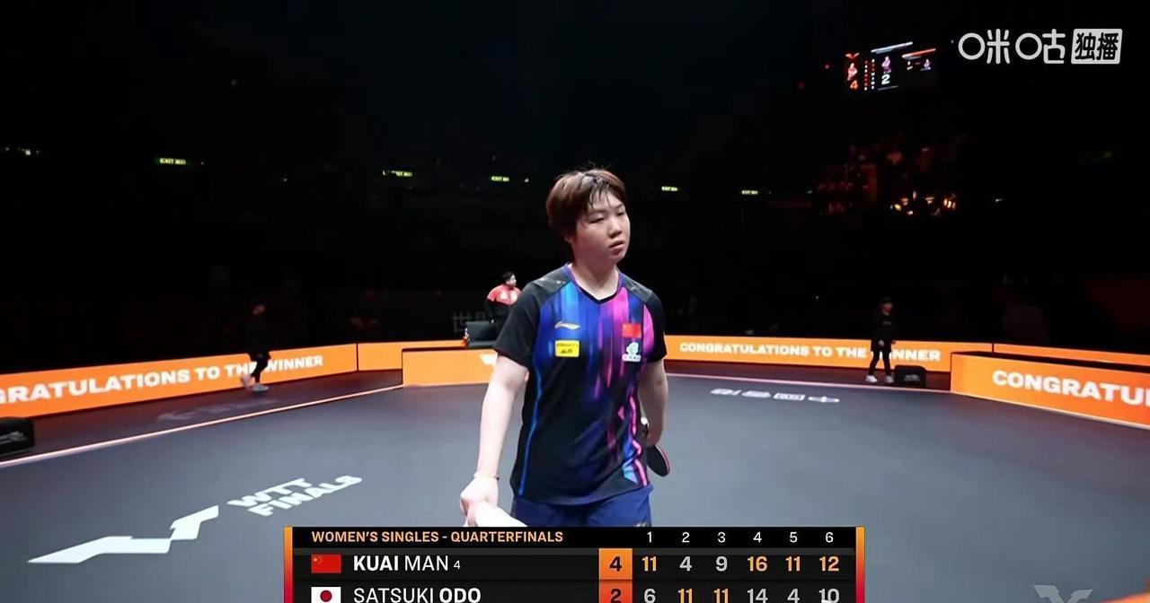 满场火星子! 蒯曼🇨🇳顽强晋级女单半决赛! 刚刚!王励勤领导和马俊峰指导在看台观看蒯曼🇨🇳比赛! 王艺迪也在看台观赛加油! 蒯曼🇨🇳4-2击败来势汹汹的大藤沙月🇯🇵,顺利晋级2025WTT香港总决赛女单四强! 六局比分为:11-6,4-11,9-11,16-14,11-4,12-10。 吓死人了,大藤沙月今天的手感也是神得可怕,蒯曼的步伐和质量也确实涨了,就咔咔硬干,终于扛下来了[赞][笑哭]! 半决赛蒯曼将对战孙颖莎VS长崎美柚的胜者 !