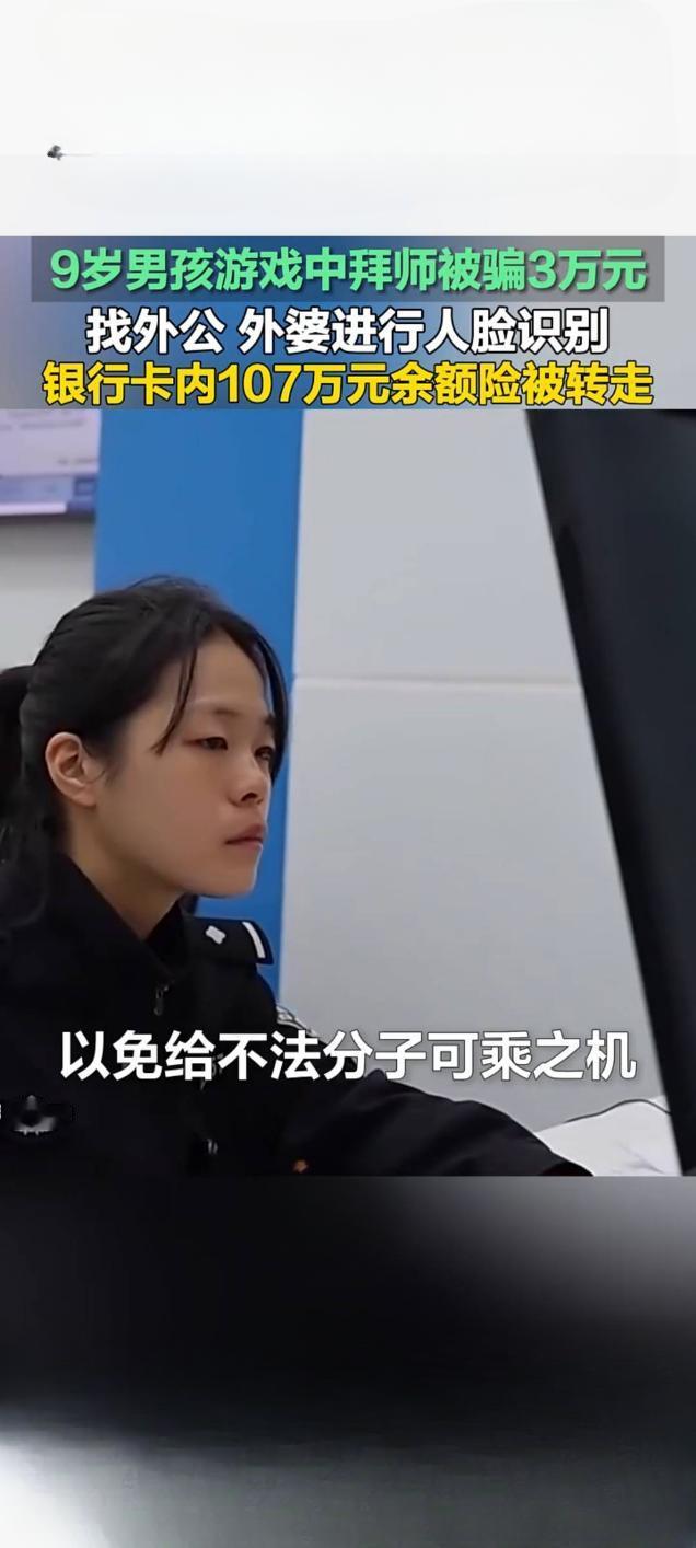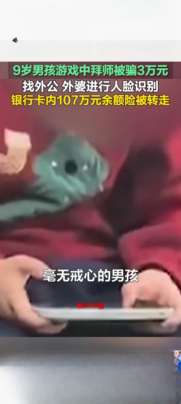 杭州9岁男孩游戏“拜师”被骗3万,107万存款险遭转移 2025年12月11日,浙江杭州一起针对未成年人的网络诈骗事件引发社会关注。一名9岁男孩在玩游戏时,为“拜师学艺”提升技能,被陌生网友以“拜师费”“装备费”等名义诱导转账。 为满足骗子的要求,男孩趁外公、外婆不注意,以“完成学校任务”为由,哄骗老人配合进行人脸识别操作,先后向对方转账3万元。此后,骗子企图进一步转移男孩所绑定的银行卡内107万元余额,所幸家长及时发现账户异常,立即采取冻结银行卡并报警的措施,避免了更大的经济损失。 该事件相关视频在快手平台播放量达2.7万次,网友纷纷留言,提醒家长加强对未成年人的网络安全教育,警惕游戏中的各类诈骗陷阱。警方也发出提示:未成年人辨别能力有限,家长应妥善保管银行卡、手机等重要物品,设置支付限额,同时加强与孩子的沟通,告知其网络诈骗的常见手段,引导孩子树立正确的消费观与安全意识。 此次事件再次敲响警钟——网络诈骗手段不断翻新,针对未成年人的案件时有发生,家庭、学校和社会需共同发力,为未成年人营造更安全的网络环境。未成年人转账 孩子骗局 儿童网络诈骗
