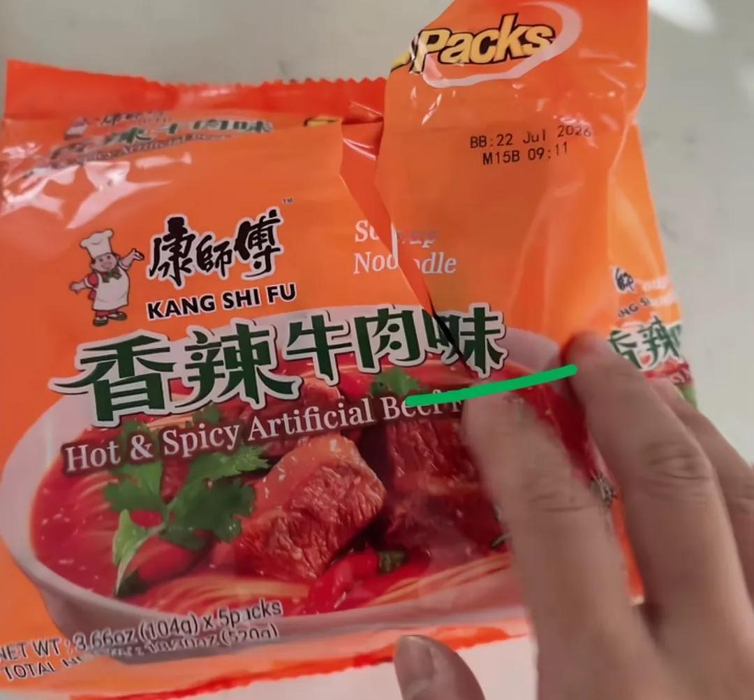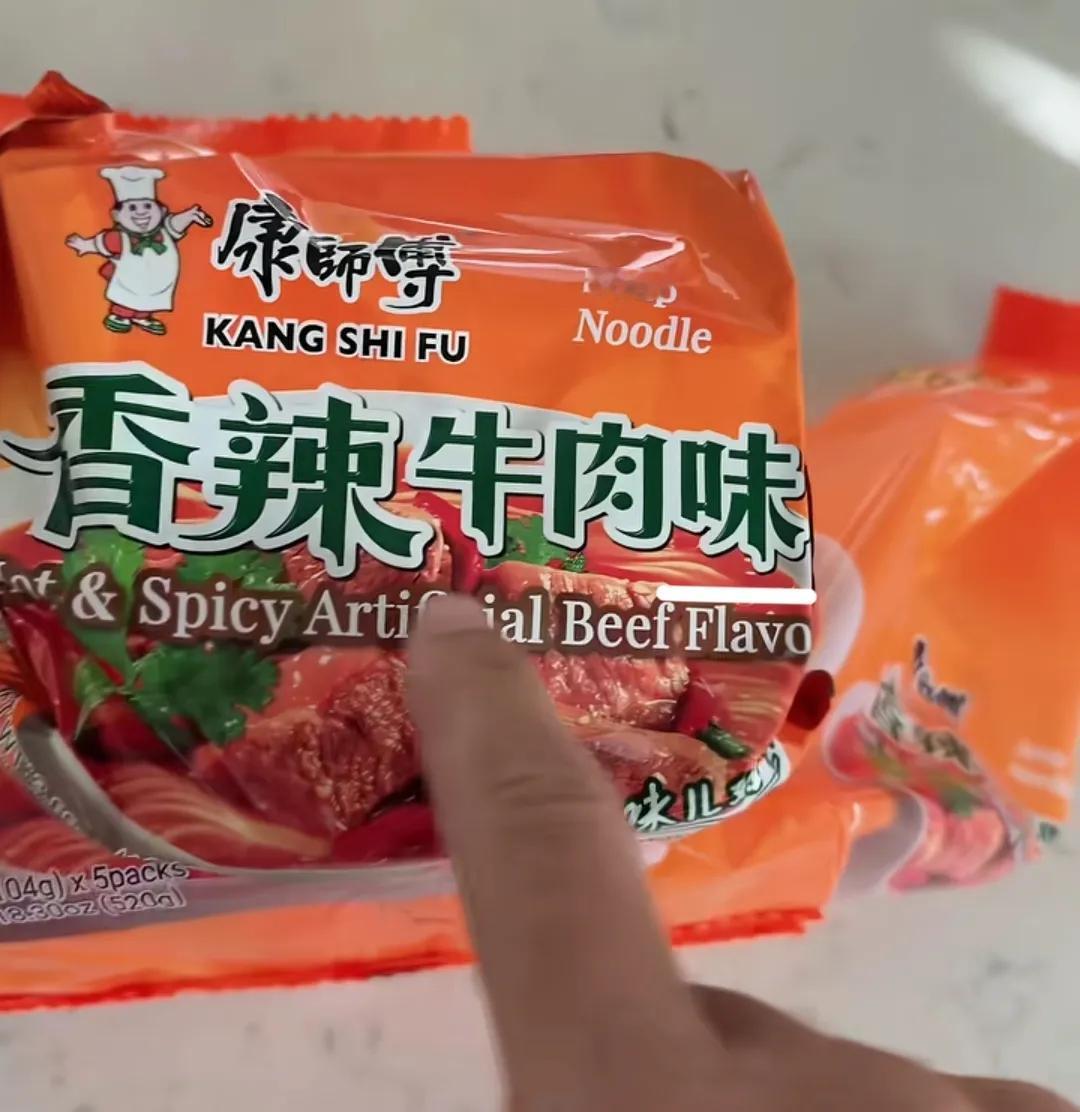 美国🇺🇸买的方便面和中国🇨🇳买的方便面有什么区别?食材是不是一样我不知道,但是外包装是有区别的:图1是国内的包装写的是“香辣牛肉面”。图2是美国超市买的写的是“香辣牛肉味”,下面英文写的是“人造牛肉风味”(Artificial Beef Flavor)。 总结:因为有法制保护,它们不敢骗美国人。 广告 虚假宣传 美国