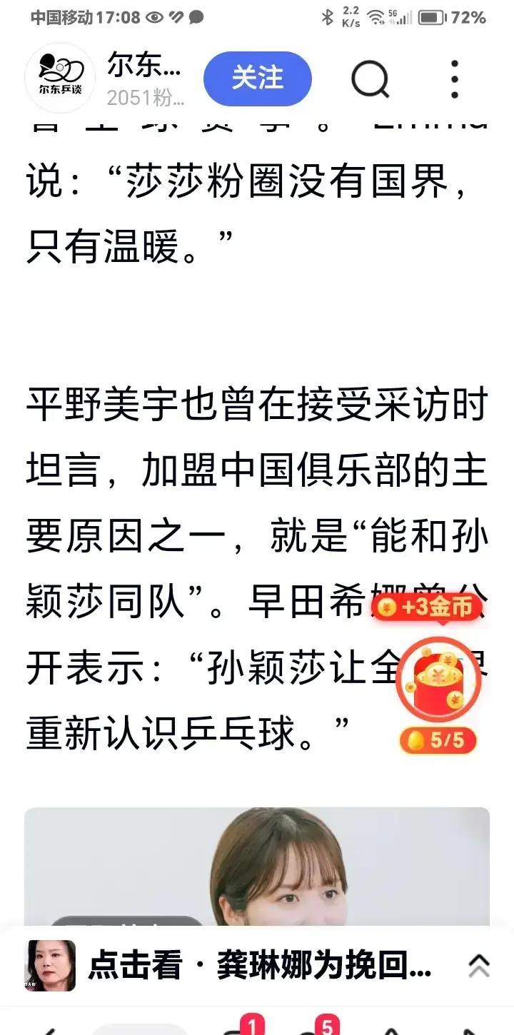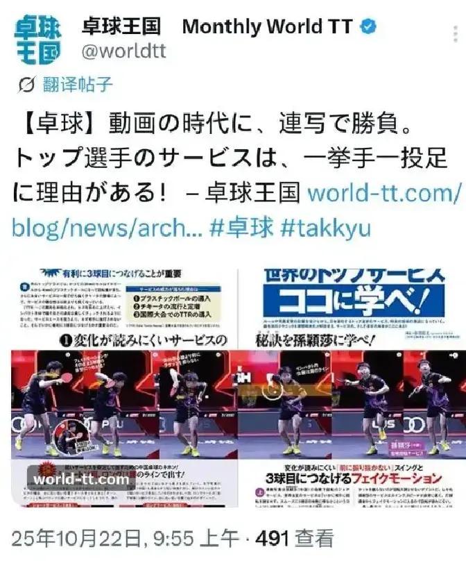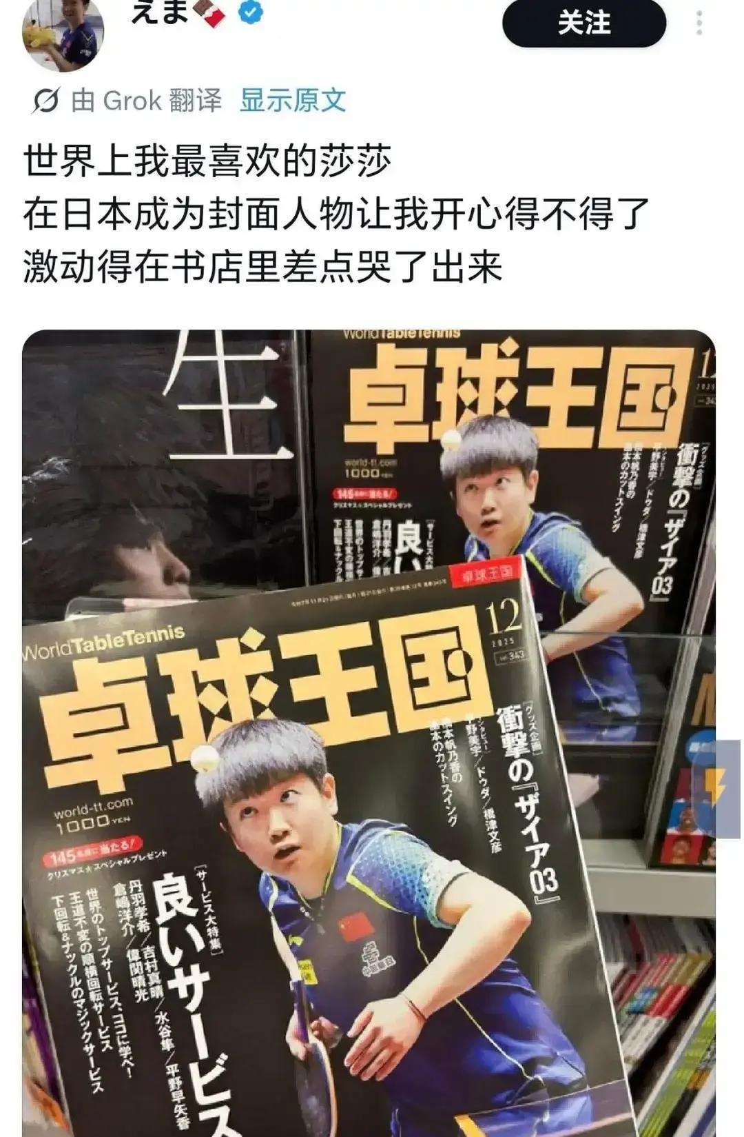 **日本乒乓杂志把孙颖莎的发球拆成12页教材,12万册2小时卖光?连丹羽孝希都蹲书店门口抢剩刊?** 对日本选手35场赢34场,早田18连胜、伊藤12连胜。巴黎奥运半决赛4:0扫伊藤,决赛稳拿团体分,场场都是定海神针。 她的发球旋转每秒65转,落点误差不到5厘米。日本教练说这是国际标杆,全队都在学,学校体育课都练她的动作。 横滨赛帮对手整理头发,澳门晚宴用张本美和当翻译跟早田热聊。日本粉丝飞深圳看她,二手杂志炒到3倍价。 竞技场上她是砸穿防线的锤,场下她是暖透国界的光——真正的女王,不用锋芒逼人,只用实力和温柔征服世界。 孙颖莎 乒乓球 体育明星的跨界魅力
