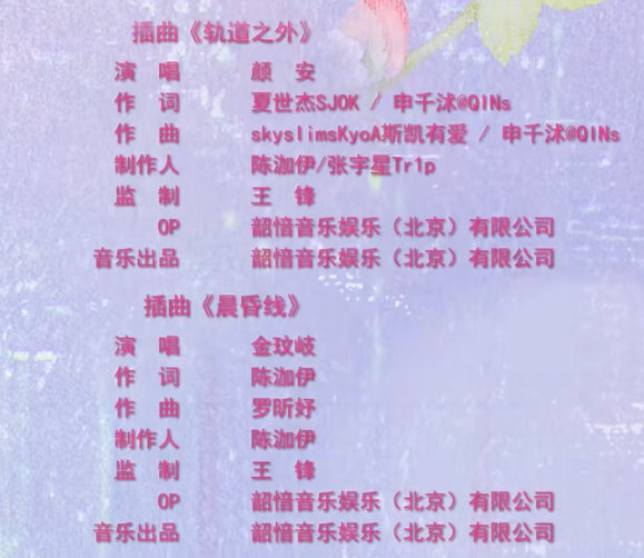 虞书欣、何与双轨ost全阵容 主题曲《我偏要》张碧晨人物曲《越界》虞书欣插曲《Still Waiting》颜人中插曲《Away》RED周洛汐插曲《轨道之外》颜安插曲《晨昏线》金玟岐插曲《一切从遇见你开始》康子奇插曲《Would You Like That》男声版 许钊豪插曲《Would You Like That》女声版 金银玲双轨空降双轨