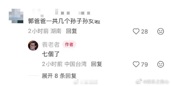 郭碧婷爸爸有7个孙子孙女了家人们!最近娱乐圈又传来一则有趣的消息,郭碧婷爸爸已经拥有 7 个孙子孙女啦!这庞大的家族阵容,瞬间让人联想到一副热闹非凡的画面。在娱乐圈里,明星们的家庭生活往往备受关注。郭碧婷以她那温柔甜美的形象深入人心,她的婚姻和家庭自然成了大家茶余饭后的谈资。如今,她的父亲一下子拥有了 7 个可爱的小宝贝,这可是实实在在的 “人生赢家” 啊!从社会学的角度来看,一个家族的繁衍壮大有着深远的意义。著名社会学家费孝通先生在《乡土中国》中提到,家族是中国社会结构的重要组成部分,家族的发展传承着文化、价值观等诸多方面。郭碧婷爸爸这 7 个孙子孙女的到来,无疑为他们的家族注入了新的活力,也让家族的故事得以延续。想象一下,7 个天真烂漫的孩子在一起嬉戏玩耍,那场景简直就是一部现实版的 “萌娃欢乐颂”。他们的成长过程中,会有欢笑、有争吵,也会有彼此之间深厚的亲情羁绊。这种亲情,是在现代快节奏社会中难能可贵的温暖。而且,对于郭碧婷爸爸来说,看着这些孙子孙女一天天长大,他的内心肯定充满了喜悦和欣慰。就像很多普通老人一样,含饴弄孙的时光是人生中最幸福的时刻。他可以把自己一生的经验和智慧传授给这些孩子们,让他们在成长的道路上少走弯路。不过,养育 7 个孩子也并非易事。从经济成本到教育精力,都需要家庭付出巨大的努力。但相信在郭碧婷这样的明星家庭里,孩子们应该会拥有比较优越的成长环境。郭碧婷爸爸拥有 7 个孙子孙女这件事,不仅仅是一个家庭的喜事,也引发了我们对于家族传承和家庭意义的思考。在这个瞬息万变的时代,家族的温暖和亲情的力量显得尤为珍贵。希望这 7 个可爱的小宝贝能够健康快乐地成长,也希望他们的家庭能够一直幸福美满。不知道大家对于郭碧婷爸爸这 “七宝家族” 有什么看法呢?欢迎在评论区留言分享哦!