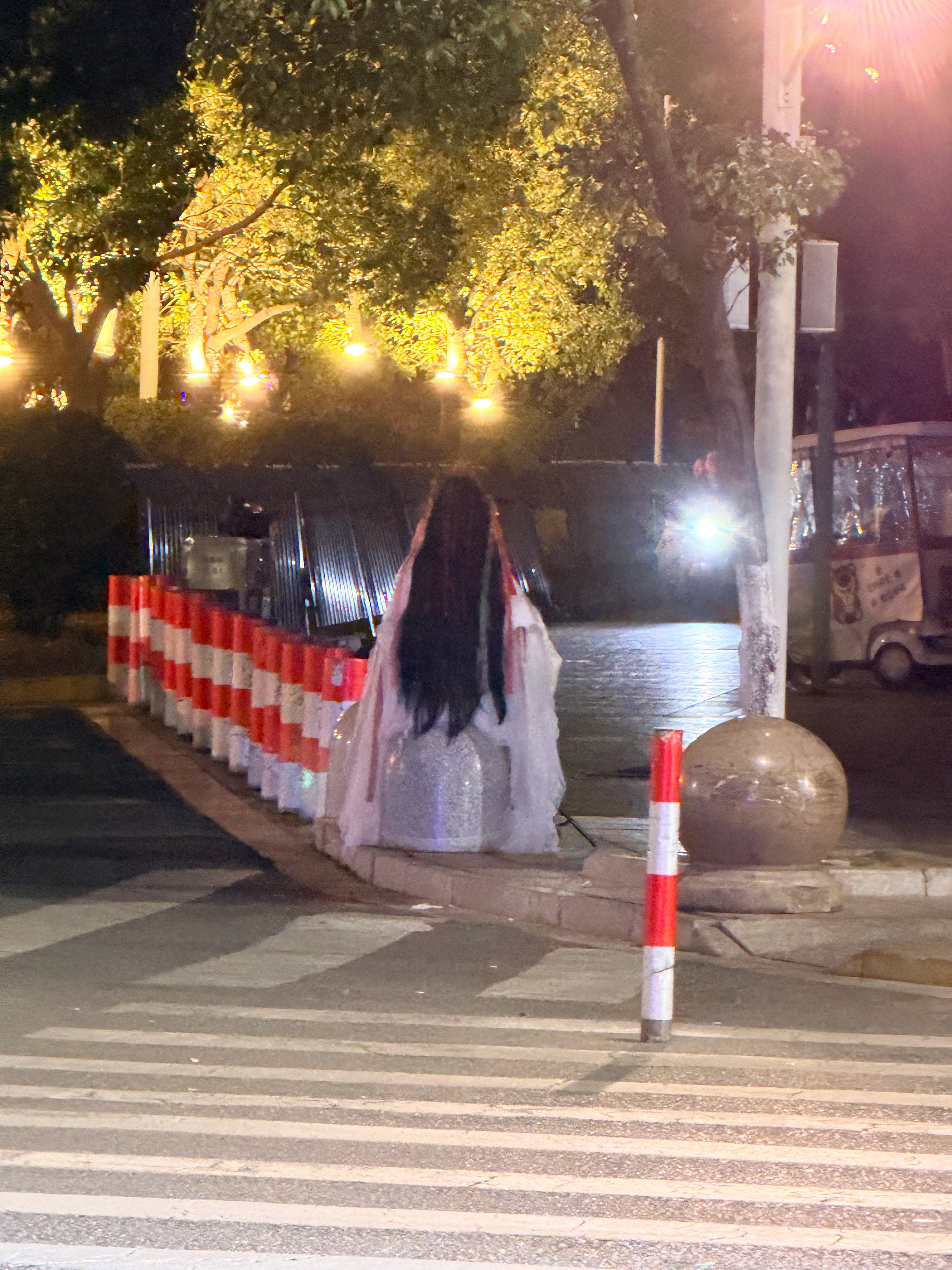 这大半夜的蹲路边
