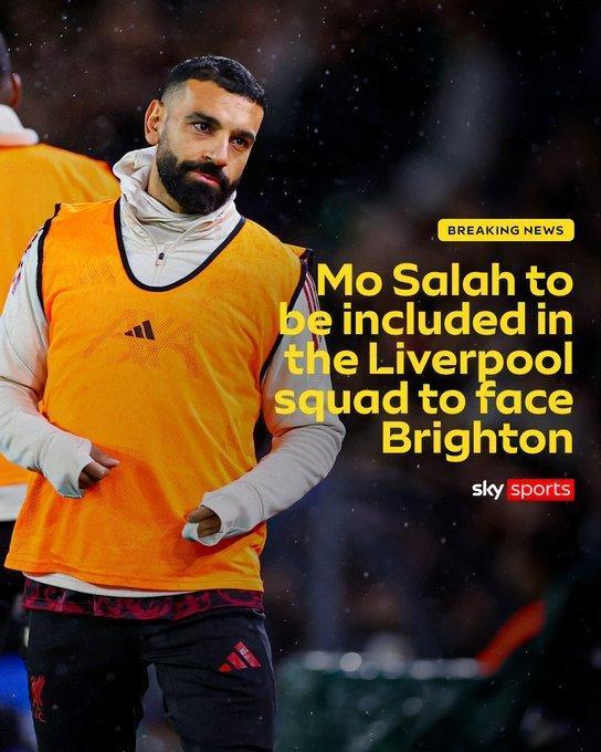 【萨拉赫重返利物浦大名单】英超赛前新发布会,利物浦主帅斯洛特确认,萨拉赫重返利物浦比赛阵容,可以出战周末对阵布莱顿的比赛:利物浦vs布莱顿问:关于萨拉赫是否会参与对阵布莱顿的比赛?答:今天上午,我将与莫进行一次对话,对话的结果将决定明天的情况。问:关于他“需要萨拉赫来解决这种情况”。答:我需要的是和他谈谈,我想下次我谈论莫的时候应该和他在一起,而不是在这里。你可以继续尝试,但除了我今天和他说话之外,没有什么好说的了,就像我说的,谈话的结果决定了明天的情况。问:关于“问题的一部分是要求他做更多的防守”。答:你可以用多种方式尝试,但我想我只是说下次我谈论他时应该和他在一起。在对阵桑德兰的比赛后的上周,我们谈了很多。我认为在桑德兰比赛后,他的代表和我们的代表、我们的代表和他、他和我之间进行了很多对话——今天我将再次与他交谈。问:关于他是否“已经道歉或需要道歉”。..答:相同的答案(上面已经回答了)!
