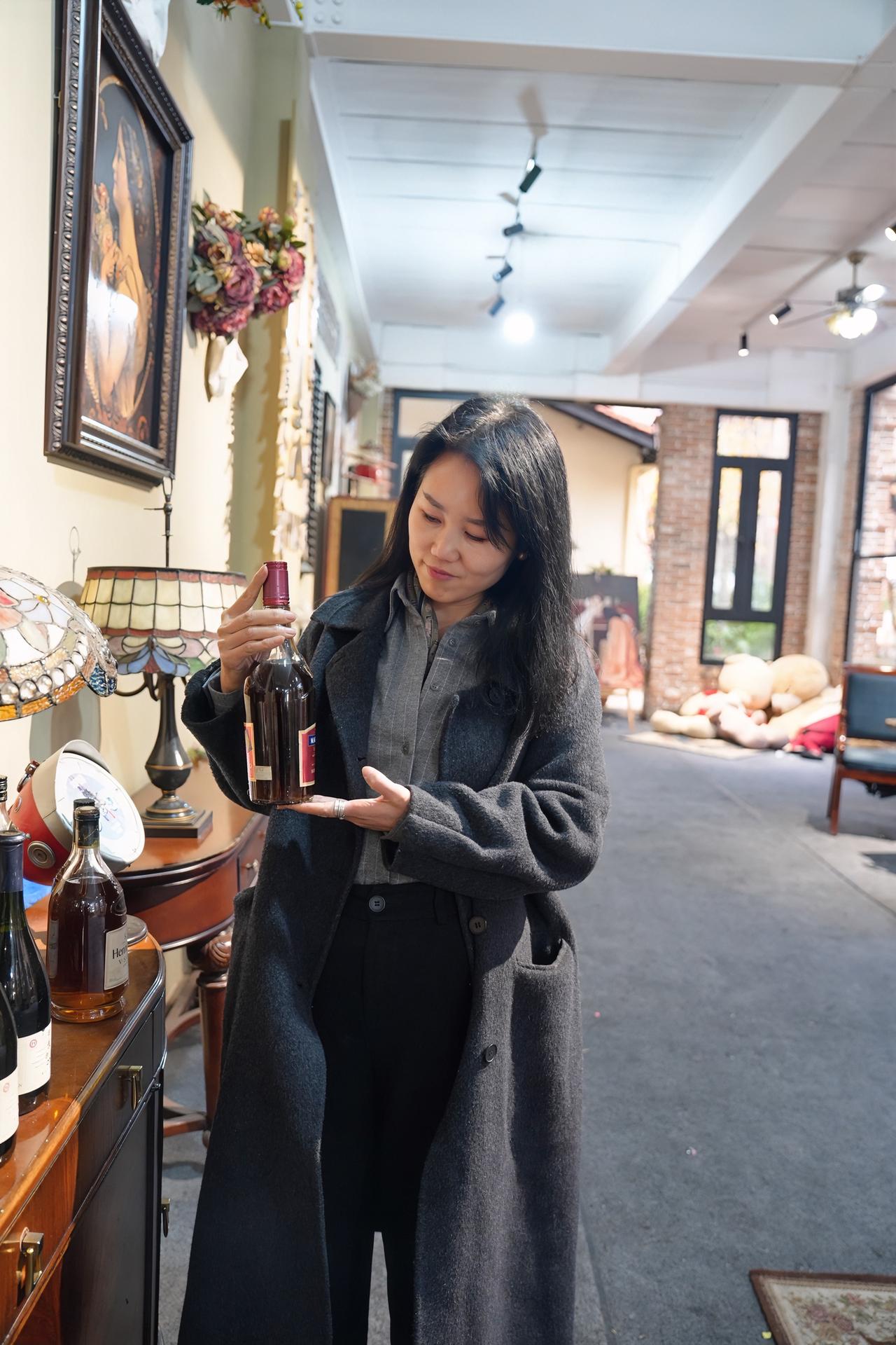 这张室内人像照的特点可从场景氛围、拍摄手法、主体表现三个维度分析,兼具生活化抓拍与复古场景融合的亮点: 1. 场景与氛围 ◦ 背景是复古风的室内空间,有油画、复古灯具、红砖墙面、老式家具等元素,营造出文艺、怀旧的氛围;环境元素丰富但不杂乱,通过景深控制让背景适度虚化,既保留场景特色,又不抢主体风头。 ◦ 光线为室内顶光+侧窗自然光结合,整体亮度适中,明暗过渡自然,没有生硬的阴影,贴合复古场景的柔和质感。 2. 拍摄手法 ◦ 采用中景构图,完整展现人物上半身与手部互动酒瓶的动作,同时纳入部分背景环境,让人物与场景形成关联;人物置于画面偏左位置,右侧留出空间延伸视觉,避免画面拥挤。 ◦ 快门速度适配人物的轻缓动作,定格了手部托举、手持酒瓶的细节,动态感自然,没有摆拍的僵硬感。 3. 主体表现 ◦ 人物身着深灰色大衣搭配格纹内搭,深色系穿搭与复古场景的暖调木质家具、红砖形成色彩对比,既融入环境又突出主体。 ◦ 人物低头注视酒瓶、手部轻托的动作,呈现出专注、好奇的情绪状态,生活化的互动让画面有故事感,避免了单纯摆拍的空洞。