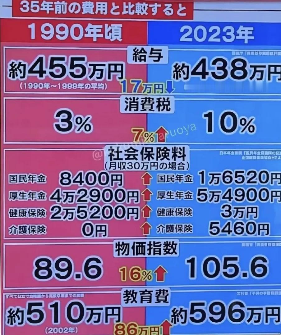 1990年我没有工作。 1995年刚参加工作的时候月工资是520元。 近30年,咱们国家的平均工资在快速提升,2024年全国城镇非私营单位月均工资已经接近1.1万,私营单位也快6000了。 2025年,我目前月工资到手大约是1万元,奖金每季度1万元多点。年收入近20万,很满意了。 过去这30年,日本人的收入稳定不动,中国人的收入,在这30年确实是飞涨了。与此同时,中国人购买的大件价格都在下降,比如汽车、家电。30年前,中国普通家庭买汽车是不可想象的事情,买台彩电也要花几年的积蓄。