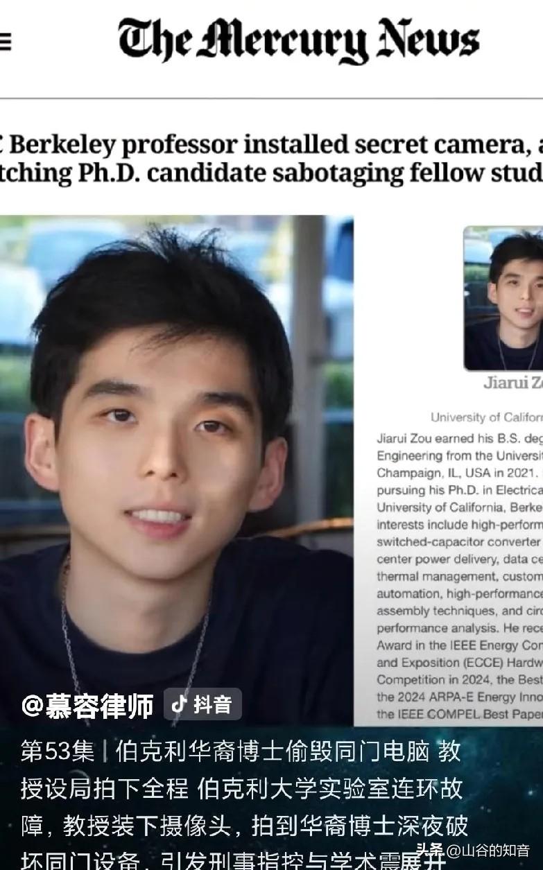 博士生做这样的事情,真是太让人震惊了 美国公立大学排第一名的加州伯克利大学,最近爆出了一件惊人的新闻,该校博士四年级学生邹某,被实验室隐秘摄像头拍摄到,破坏同学电脑和实验室设备,导致电脑内存的所有实验数据全部丢失,设备损坏,如果重新做实验,可能需要半年甚至更长的时间,同学的毕业时间肯定要推迟,找工作也会受到极大的影响,一切都乱套了。 邹某已经被捕,被指控三项重度破坏罪,但是他被抓后,他什么话也不说,拒绝透露任何细节,只等着律师来。 想想看,能走进加州伯克利的博士实验室,哪个不是一路过关斩将的佼佼者?背后是十几年寒窗苦读的坚持,是无数个日夜泡在书本和实验里的付出。可邹某这一动手,毁掉的不只是一台电脑、几台设备,更是同学数年的心血,是人家规划好的人生轨迹。那些丢失的数据,可能是反复验证了上百次的实验结论,是毕业答辩的核心支撑,甚至是对接企业合作的关键依据,半年以上的补做时间,足以让原本稳操胜券的毕业名额变得岌岌可危,心仪的工作机会更是会悄悄溜走,这种打击,对任何一个求学多年的人来说,都是毁灭性的。 更让人无法接受的是邹某被捕后的态度,全程沉默、拒绝沟通,仿佛自己只是个无关紧要的旁观者。这种冷漠比破坏行为本身更伤人,他心里显然清楚,自己的举动会给同学带来多大的麻烦,却连一句辩解或是歉意都不愿给出,眼里只剩下自私和逃避。要知道,加州伯克利作为美国公立高校的领头羊,向来以严格的学术规范和道德准则著称,该校《学术诚信与行为准则》中明确规定,任何蓄意破坏研究成果、影响他人学术进展的行为,不仅会被立即开除学籍,还会被纳入学术诚信黑名单,终身限制进入美国高校从事研究工作,邹某不可能不清楚这些后果,可他还是选择了铤而走险,说到底,是内心的贪婪和嫉妒,冲垮了基本的道德底线。 其实在顶尖高校的学术圈里,竞争激烈是常态,但再激烈的竞争,也该守得住边界。美国教育委员会曾在2023年发布过一份针对北美顶尖高校博士生的调研报告,数据显示,有38%的博士生曾因科研压力、毕业焦虑产生过负面情绪,甚至对同行产生过嫉妒心理,但绝大多数人都会通过寻求心理疏导、和导师沟通等方式缓解情绪,真正突破底线做出极端行为的,寥寥无几。毕竟,学术研究追求的是探索真理、互相成就,而非互相拆台。就像曾在加州伯克利任教的诺贝尔化学奖得主珍妮弗·杜德纳,她在科研过程中多次和同行共享关键实验数据,反而加速了基因编辑技术的突破,这样的格局,才是顶尖学者该有的模样。 邹某的行为,不仅毁了别人,更彻底葬送了自己。目前三项重度破坏罪的指控一旦成立,他将面临最高5年的监禁和巨额赔偿金,而加州伯克利已经启动了退学程序,不出意外,他的博士学位梦会彻底破碎。就算日后刑满释放,学术圈的黑名单会伴随终身,任何正规的科研机构都不会接纳他,十几年的努力,全因一时的恶念付诸东流,实在可悲又可叹。学历从来都不是人品的保证书,博士头衔代表的是专业能力的认可,更该搭配与之匹配的道德素养,一个连基本尊重和底线都没有的人,就算学识再高,也终究成不了对社会有用的人。 更值得深思的是,这件事也给所有顶尖高校敲响了警钟。在追求学术成果、提升排名的同时,更该关注学生的心理状态,建立完善的心理疏导机制和竞争引导体系,帮助学生树立正确的竞争观,避免因压力过大而走向极端。毕竟,培养一个顶尖人才不易,既要教会他们做事的能力,更要教会他们做人的道理,这才是教育真正的意义所在。 各位读者你们怎么看?欢迎在评论区讨论。