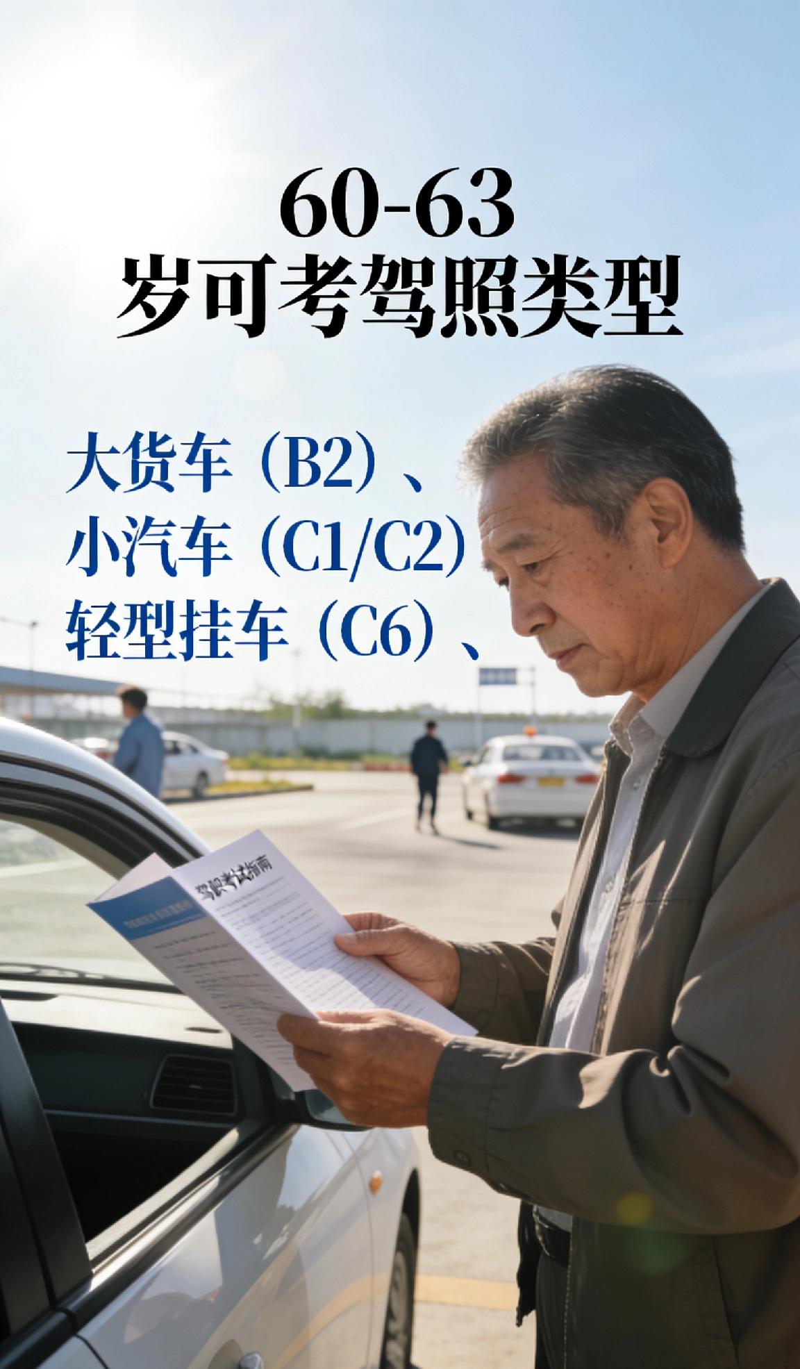 60岁以上可以考哪些驾照? 咱60到63岁,能考大货车(B2)、小汽车(C1/C2),还能加考轻型挂车(C6);63岁以上换成C1/C2,想开大客车得过“三力测试”。70岁以上能考小汽车和轻便摩托(F),先体检,再考三力——就是测记忆力、判断力、反应力,答题认图超简单,之后每年交次体检证明,就能安心开啦~(个人观点,仅供参考)考驾照新规 中老年人驾照