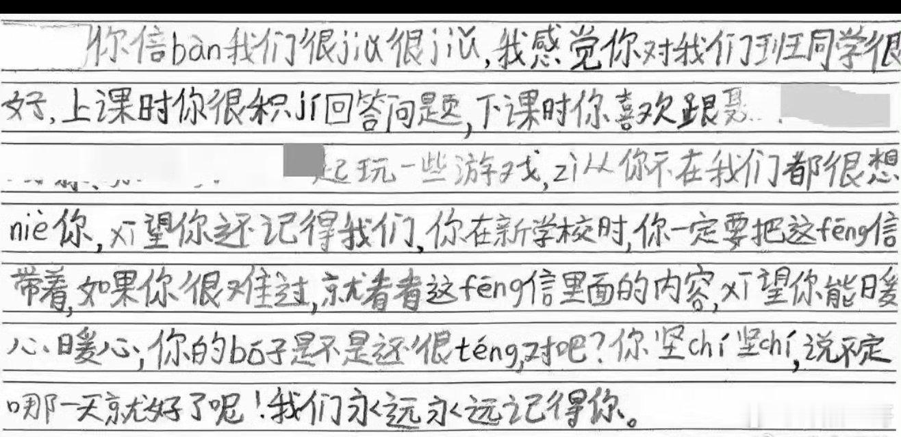 纸短情长,是童年最纯的暖三年级的教室里,没有沉重的告别,只有一封封歪歪扭扭的信,装着小朋友们最朴素的牵挂。老师那句“转学了”的谎言,裹着最柔软的善意,把生死的沉重,轻轻挡在了童真之外。调皮蛋偷偷放下的水果橡皮,认真写下的“要交新朋友”,带着哭腔的“我特别想他”,都是童年里最干净的情谊。那些没说出口的再见,藏在信笺里,藏在老师泛红的眼眶里,也藏在那个带着微笑离开的孩子的童话里。原来最动人的温暖,从不是华丽的辞藻,而是孩童世界里,毫无保留的惦记与祝福。小学生病逝同学以为是转学纷纷写信