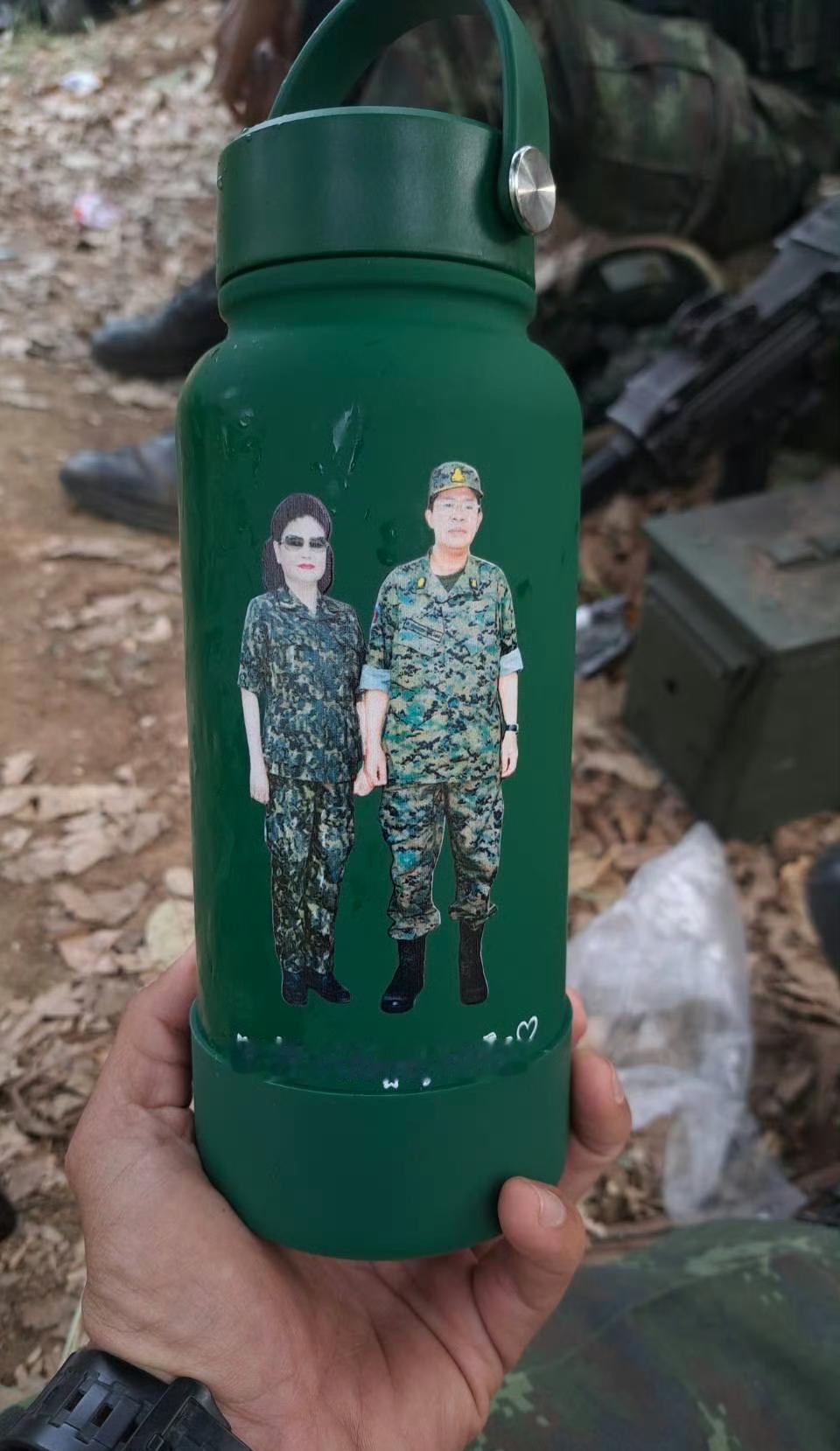 泰军内部对缴获的柬埔寨军人遗留物品标价贩卖,目前最火热的是柬埔寨“护卫司令部”BHQ人员遗留的臂章和其他个人物品。 看来,柬埔寨士兵对洪森家族还是很崇拜的,连手表水杯都印有洪森的画像。近日,洪森也是号召全国支援前线抵抗“暹罗贼”,呼吁民众捐赠一些方便面和扁米。 这才仅仅是小规模边境冲突,柬埔寨后勤就如此捉襟见肘,可见其军备松弛。洪森从牙缝里省点,前线也不会是这个样子。