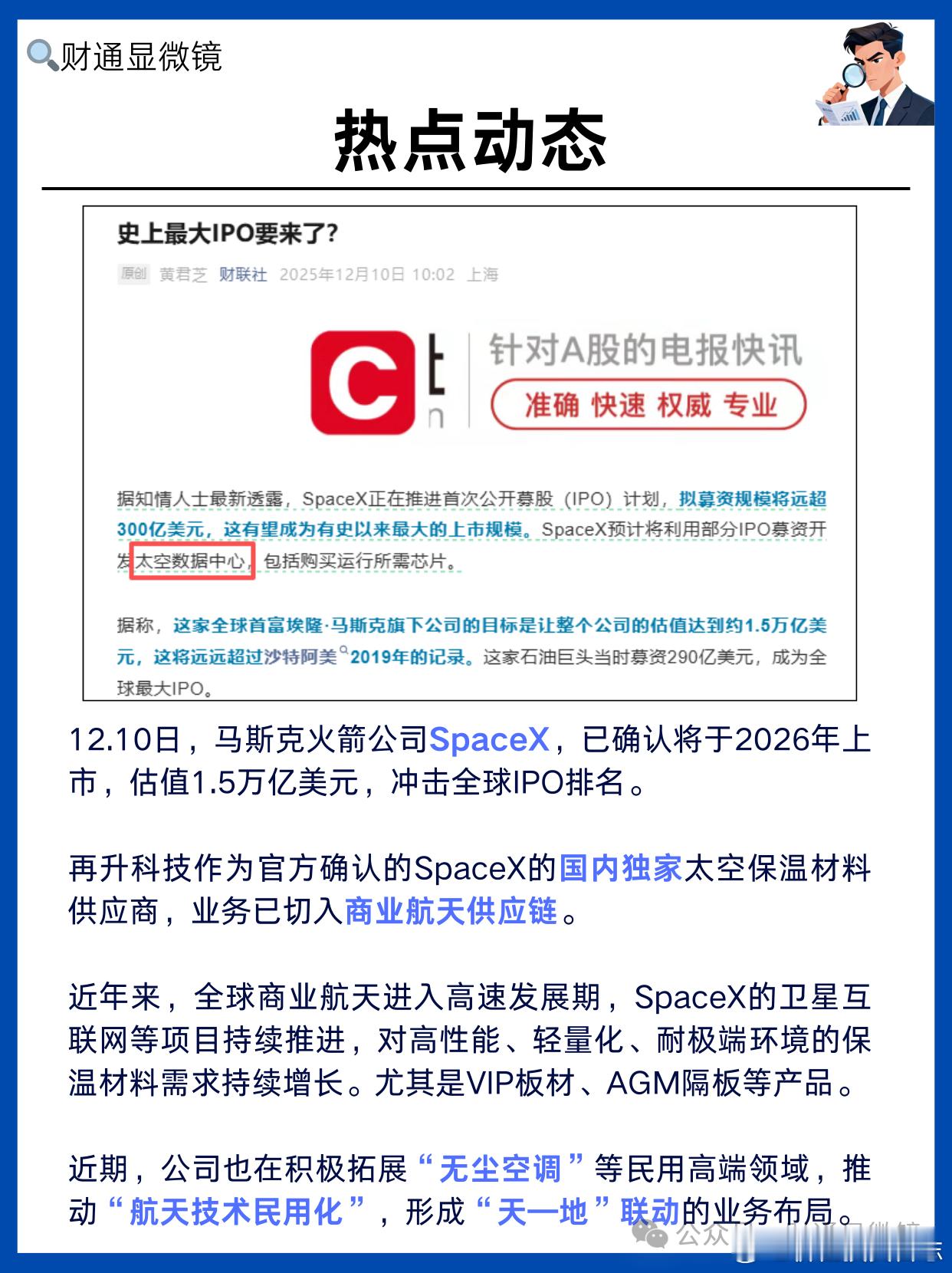 价值投资日志 企业拆解 | 商业航天:再升科技马斯克宣布spaceX于2026年冲击全球IPO排名,市场对于商业航天再次注入了高期待。再升科技作为国内独家被其官方认证的供应商,提供的太空保温材料是公司技术实力的高光名片,说明产品走上了“国际范儿”。 泰安·金山公园