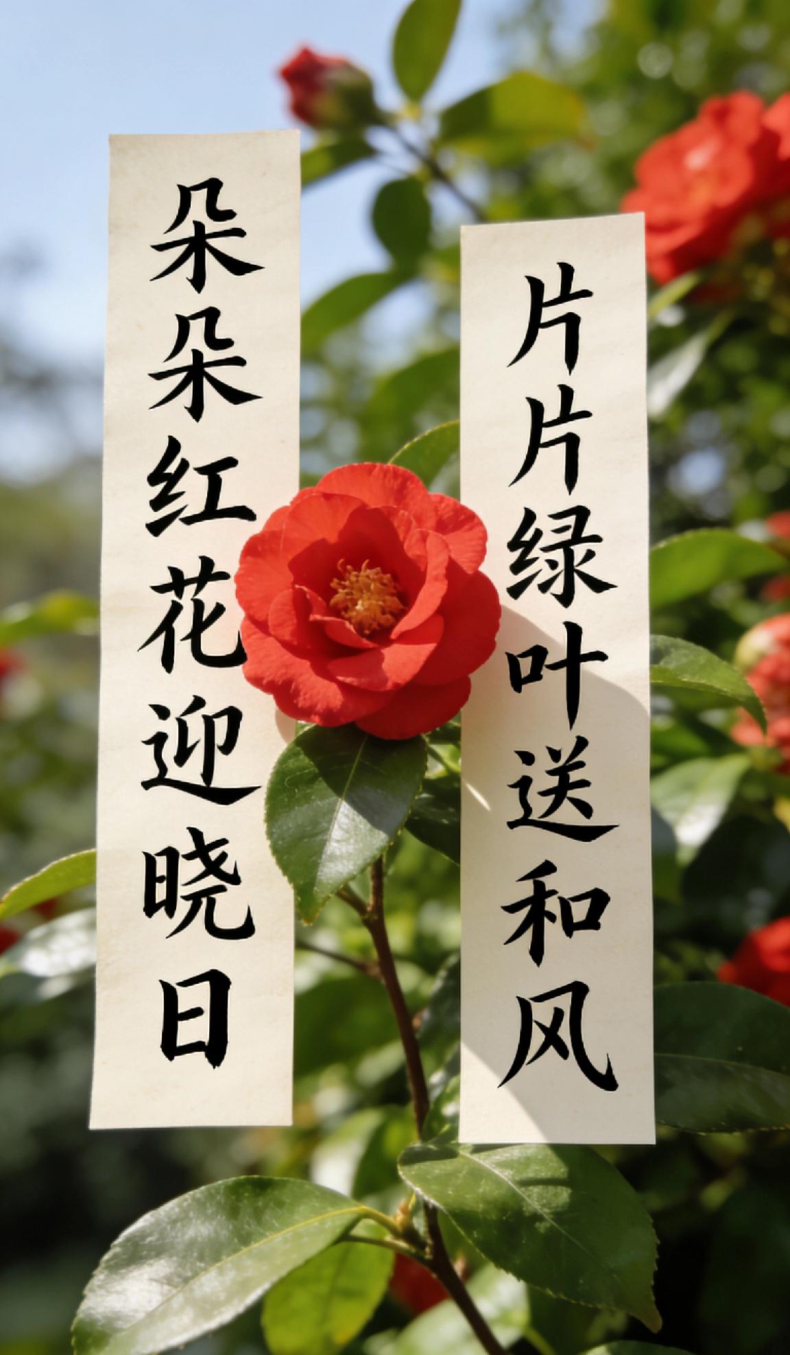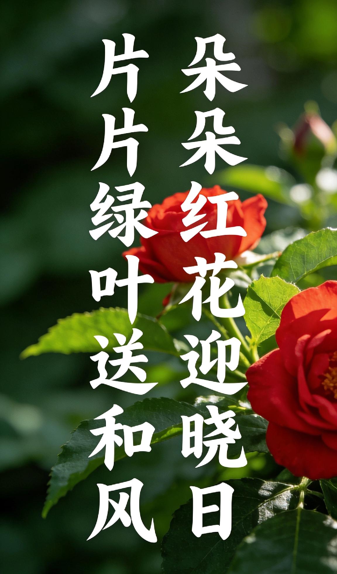下联:片片绿叶送和风。诚邀上联上联:朵朵红花迎晓日
