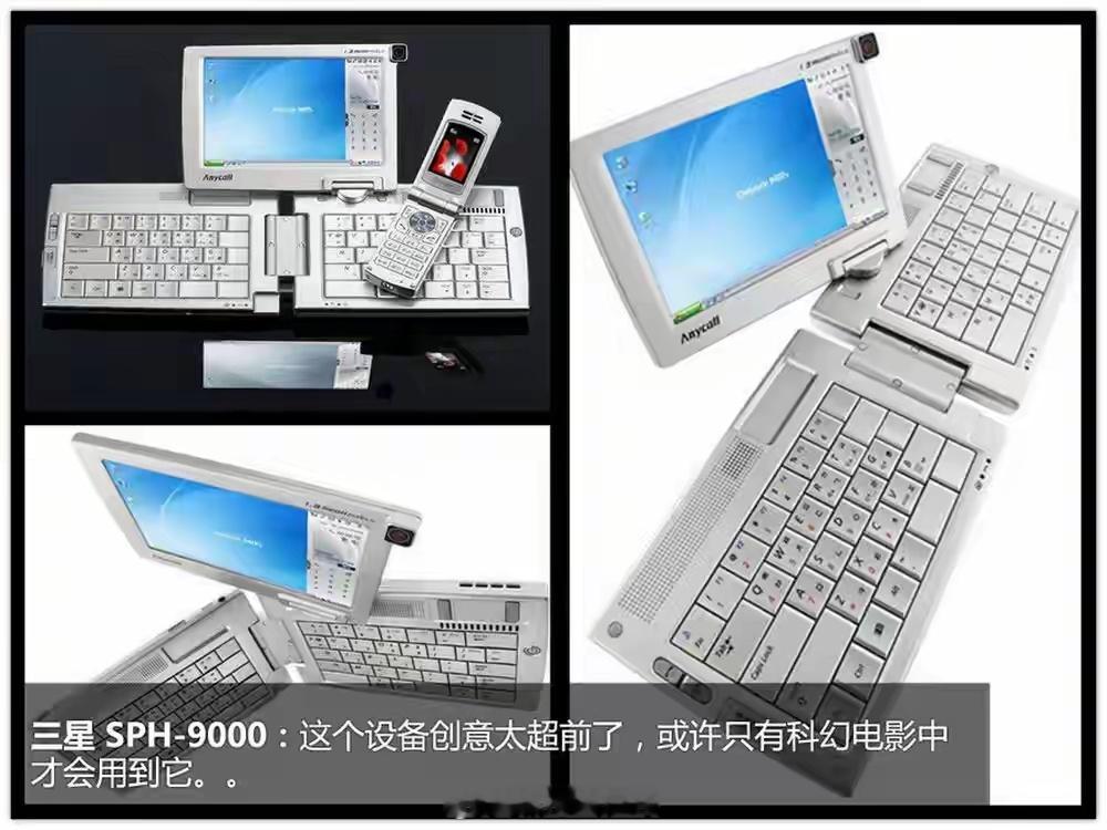 三星最早的三折叠手机,结合了手机、UMPC、PMP、PDA等设备的特点,搭载微软Win XP Home系统,配置相当于一台中档笔记本电脑