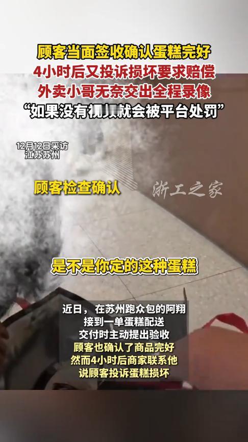 “差点被白嫖!”12月9日,江苏苏州,一外卖小哥给顾客送蛋糕,当着面让对方检查了