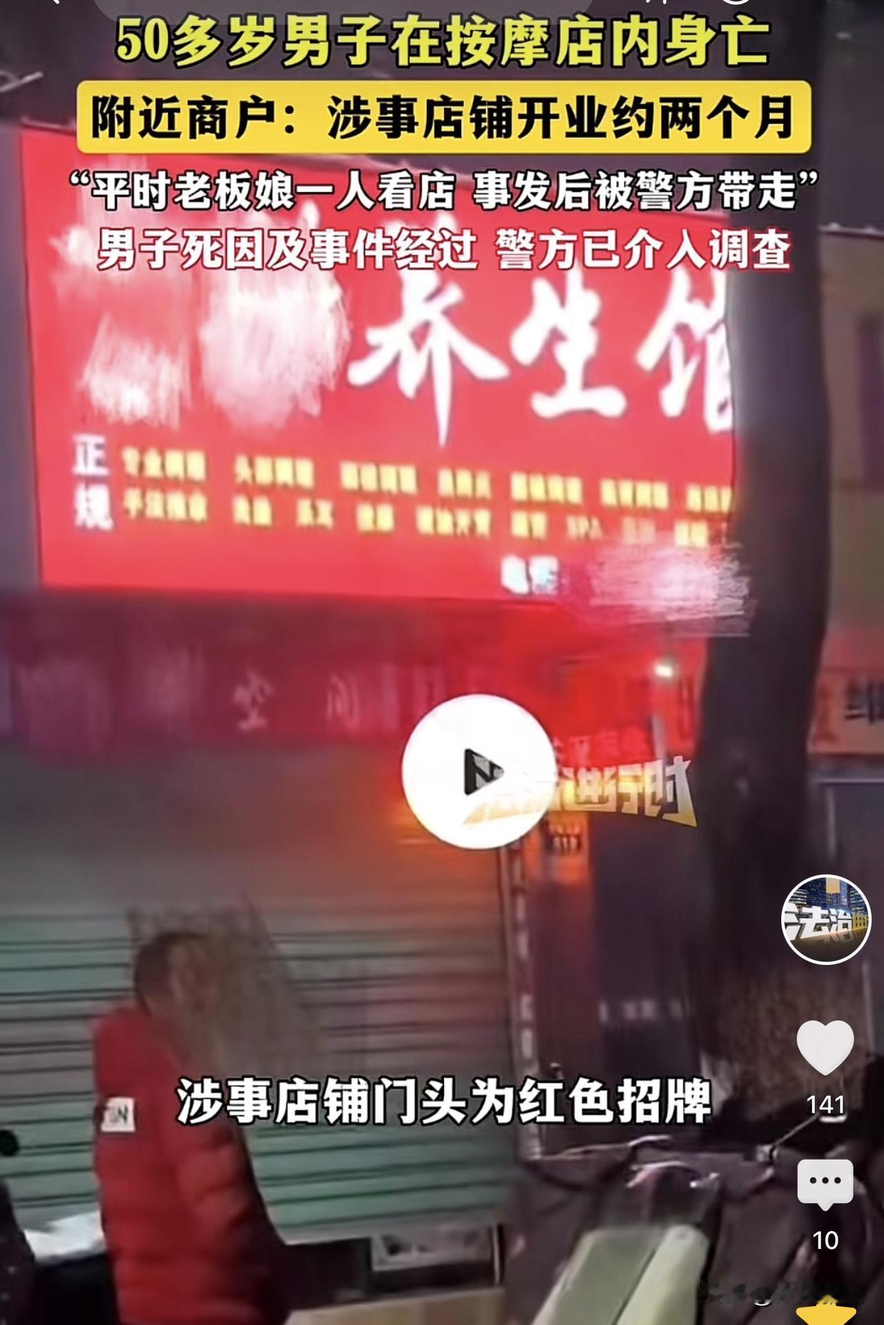 江西,一五旬男子到开业2个月的按摩店消费时不幸身亡,事发后,按摩店老板娘就被警方带走调查,店铺也关了门,据悉,这家按摩店主打采耳、SPA以及按摩服务,门头上更是印有正规二字。事发后,网友纷纷调侃,到底是不是挂羊头卖狗肉? 据按摩店附近一家商户表示,这家店平时只有老板娘一个人在看店,据他了解,是11日晚上,一名50多岁男子进店按摩,晚上10点左右发生的意外,具体原因不明,因为对该店情况不了解,无法猜事件原因。 实际上,男顾客在按摩店死亡,无非以下几种情况。 第一,男顾客在做正常按摩时,因为自己的身体原因,比如本身有疾病,在按摩时突发疾病死亡。 如果是这种情况,按摩店老板是否尽到了安全保障义务,其实就决定其是否要承担责任,即是否在看到顾客身体有异样时,及时采取拨打急救电话,或者是否对顾客采取了必要的急救措施,比如实施心肺复苏等。 如果没有尽到上述义务,按照民法典的规定,宾馆、商场、银行、车站、机场、体育场馆、娱乐场所等经营场所、公共场所的经营者、管理者或者群众性活动的组织者,未尽到安全保障义务,造成他人损害的,应当承担侵权责任。 那么在这种情况下,会承担民事赔偿责任。 第二,男顾客在接受正常按摩服务,但是因为老板娘手法的问题,直接按压到男顾客某些穴位或者要害部位,导致了男顾客死亡,那么在这种情况下,老板年就要承担过失致人死亡罪的刑事责任了,挨揍刑法的规定,一般可能面临3到7年有期徒刑的处罚。 第三,男顾客在接受服务,双方发生矛盾,老板娘进而动手致顾客死亡,这种就涉及到故意伤害致死以及故意杀人罪等问题了,如果罪名成立,老板娘至少面临十年以上的刑期。 第四种情况就是男顾客本身在接受的是以金钱为媒介发生关系的服务,在接受的时候,因为情绪激动,诱发本身疾病死亡,那么,在这种情况下,无论老板娘是否尽到了安全保障义务,即是否及时报警,会影响老板娘赔偿的责任。 如果老板娘在事发后已履行报警和配合抢救义务,无证据证明顾客猝死与老板娘存在因果关系,且老板娘对猝死无主观过错的,那么并不会承担赔偿责任。 当然,由于双方的行为属于违背公序良俗的,也不排除最终法院会酌情让老板娘承担些许责任的可能性,但是如果是第四种情况,那么,老板娘还会面临行政处罚,即罚款5000元以及行政拘留15日。 警方之所以将老板娘带走调查,只不过是调查本案是否属于刑事案件而已,若排除刑事案件后,自然不会立案处理,而是让双方走司法途径处理。 有网友表示,如果按摩店真的是正规的,顾客在店里因在自身疾病去世,确实会影响生意。 还有网友表示,听到按摩店,听到顾客在按摩店去世,自然而然的就联想到是来“爽”一下的,加上老板娘又被警方带走,更是加剧了怀疑。 对此,你对本案有什么看法? —————————— 关注我,带你评析法律热点,关注冷暖人生。 文章原创,抄袭必究