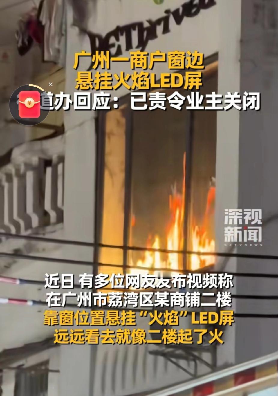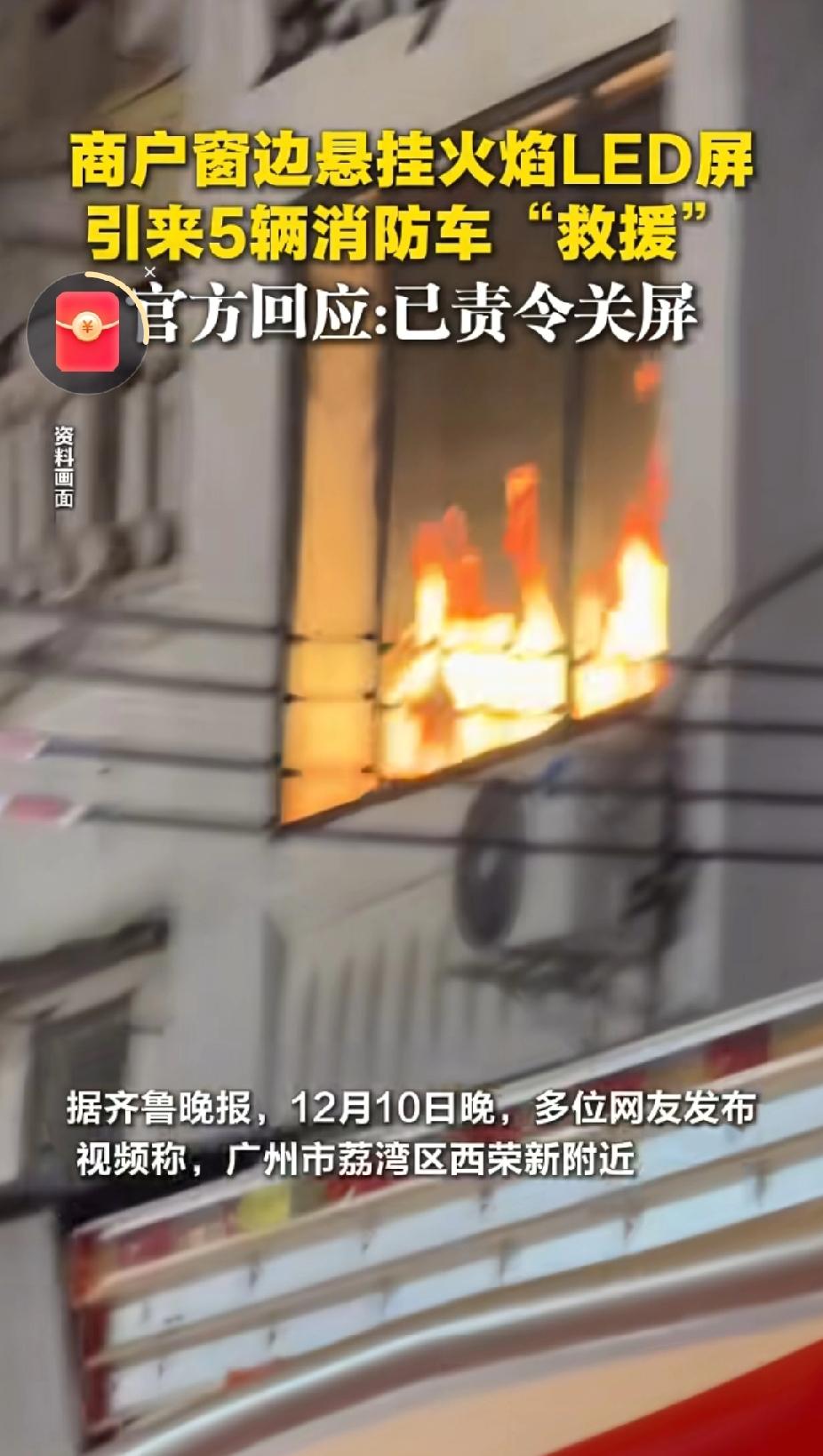 前几天,广州荔湾一家 做供应链的商铺,挂着个会动的火焰图案LED屏,结果闹了个大笑话!开着五辆消防车紧急赶过去,到了之后才发现,根本不是真着火,就是一场“假火灾”。 拍下来的视频能看到,这家商铺二楼的LED屏一直闪着像火一样的光效,从远处看,真跟哪里烧起来了似的。更有意思的是,商铺大门紧闭着,路过的人以为里面有人被困住了,赶紧就打了报警电话。消防员到了现场才知道是白紧张了一场,街道办已经让商户把屏幕关了。 有律师说,虽然现在还没有专门的规定说不能用这种屏幕,但要是占用了公共资源,可能会被治安处罚的。网友们都在讨论:这算不算报假警啊?消防出警花的钱,是不是该让商户来承担呢? 有专业的人提醒,商家在用这种仿真效果的设备之前,最好先跟街道报备一下;普通人要是看到有点像着火的情况,也先看看清楚再报警。毕竟消防资源本来就宝贵,可不能随便浪费。 你觉得啊,这事儿到底怪谁?是商家为了吸引人眼球玩脱了,还是路人反应太紧张啦?
