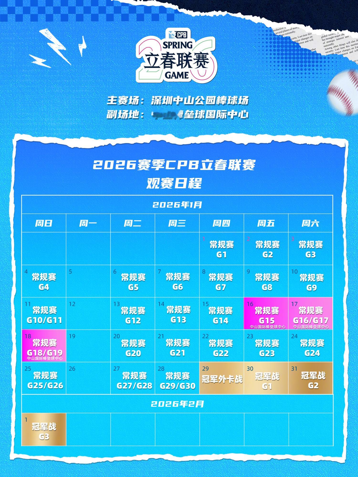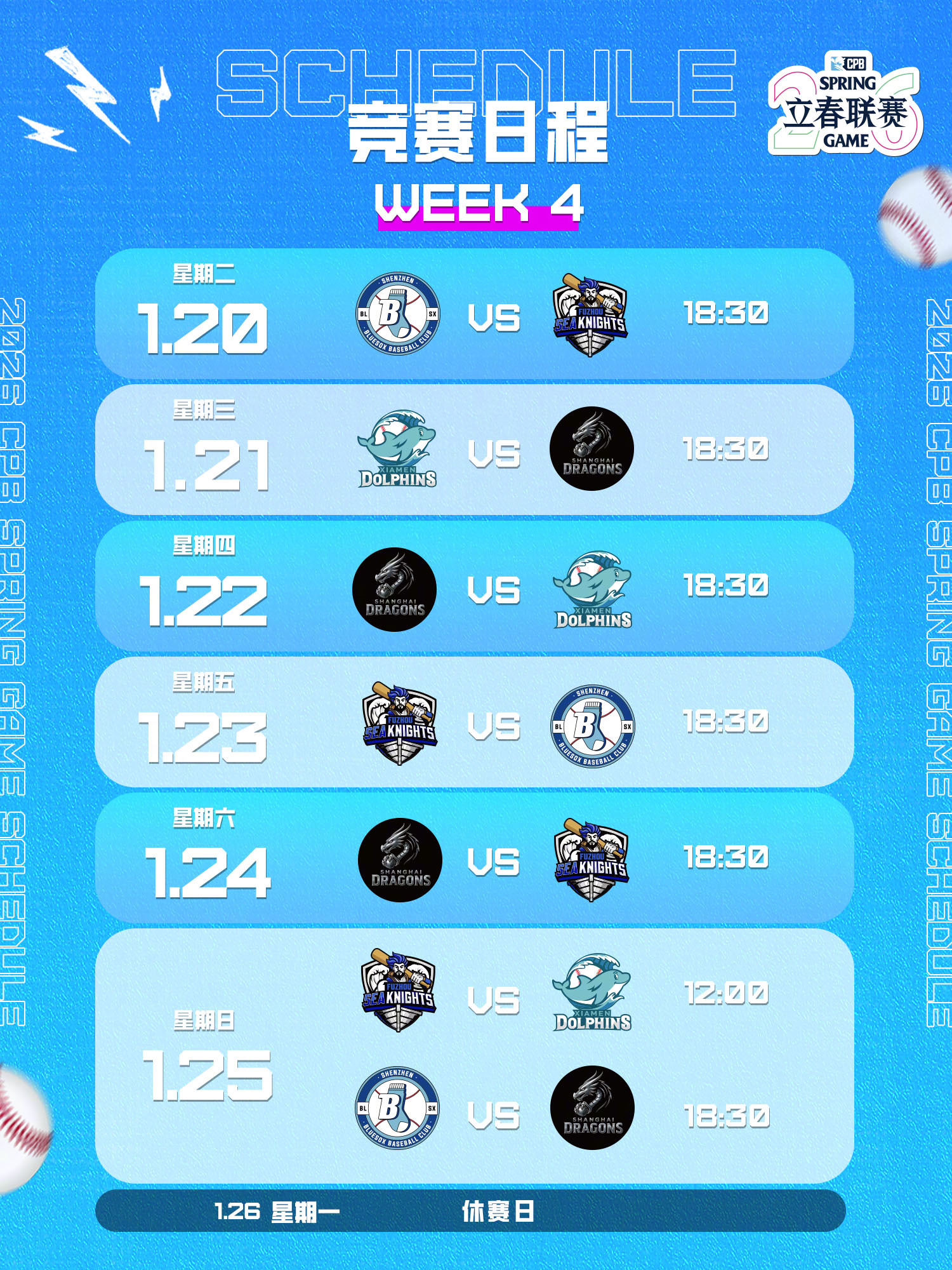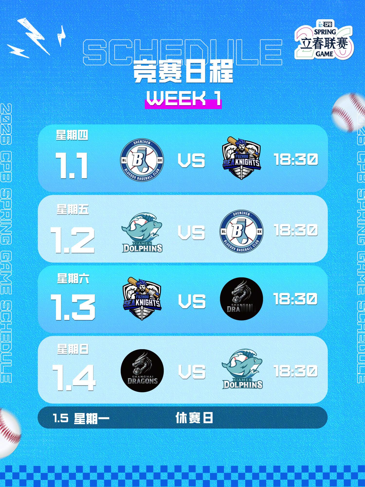 热血集结,征程开启!2026赛季立春联赛赛程正式公布!深圳蓝袜棒球俱乐部、厦门海豚棒球俱乐部、福州海侠棒球俱乐部和上海正大龙棒球俱乐部近日已完成各自的球员选秀及签约,新赛季蓄势待发,你期待中国棒球的新纪元吗?CPB中国棒球城市联赛