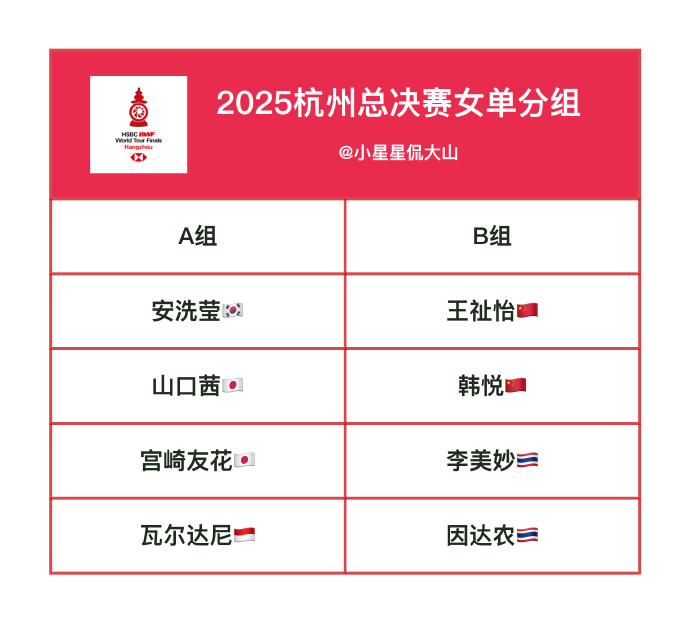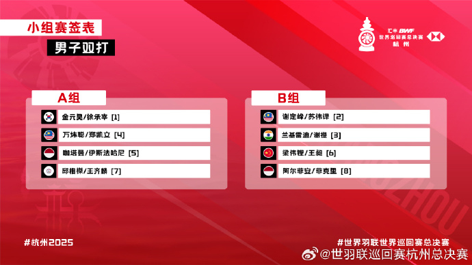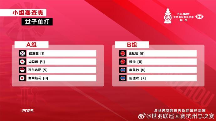 世界羽联总决赛抽签2025年世界羽联年终总决赛12月17日-12月21日,年终总决赛,各单项分组签表: 总决赛梁王进死亡之组2025年世界羽联年终总决赛