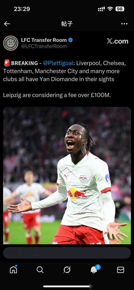 德甲球员现在都是天价,莱比锡说迪奥曼德1亿才卖! 据说切尔西,利物浦,曼城等球队感兴趣。 莱比锡红牛这番操作,简直是把“人傻钱多”四个字拍在了桌面上。 但你真觉得莱比锡是疯了么? 恰恰相反。 他们精得很。 迪奥曼德这小伙子,你不能光盯着进球数那点芝麻看。 场均过人次数断崖式领先德甲,盘带推进能力在欧洲同年龄段里排进前1%,这种爆炸性的天赋,才是真正值钱的硬通货。 如今足坛,找个能稳定进球的中锋或许不难,但想觅得一个能凭一己之力撕开整条防线的爆点,那可是凤毛麟角。 莱比锡这1亿欧元的标价,压根不是真想卖,而是一块“非卖品”的挡箭牌,直接劝退那些抱着捡漏心态的买家。 这背后,站着的是克洛普犀利的眼光。 老爷子作为红牛集团的全球足球主管,亲自力荐签下的苗子,能是等闲之辈? 他看中的正是迪奥曼德身上那种现代足球最稀缺的、能改变比赛节奏的原始冲击力。 想想当年的登贝莱,初登德甲时数据也不耀眼,但那种边路的破坏力,直接让多特蒙德卖出了天价。 莱比锡不过是在复制这条“发掘-培养-升值”的成功路径罢了。 再看看围着转的买家名单,切尔西、利物浦、曼城……哪个不是挥金如土的主? 特别是利物浦,和红牛系关系密切,队内索博斯洛伊、科纳特都是成功案例。 这种背景下,1亿欧元更像是一种姿态,要谈,就拿出现实点的诚意,别想着用三五千万就来刮这张极可能中头奖的彩票。 当然,我们必须清醒。 1亿欧元买一个德甲经验尚浅的年轻人,风险巨大。 多少“超新星”在巨额转会费和天价年薪的重压下迷失自我? 但这就是当今足坛的残酷逻辑,尤其是英超资本疯狂涌入后,球员估值体系早已泡沫横飞。 与其说这是在为球员当下的能力付费,不如说是在为他未来可能达到的高度下注。 莱比锡赌的是迪奥曼德能成为下一个桑乔、哈兰德式的现象级产品。 回过头看凯恩,稳定的进球机器,世界级中锋,若真标价5亿,从竞技层面看或许更“值”。 但足球经济学的诡异之处就在于,潜力有时比即战力更让人疯狂。 年轻,本身就是最大的资本。 迪奥曼德们承载的是对未来十年的想象,而这份想象,在豪门俱乐部的资产负债表上,恰恰是最昂贵的那一部分。 只是苦了球迷。 看着动辄上亿的标价,只能感叹足球已经越来越像一场资本游戏。 我们怀念那个靠战术和团队赢球的年代,但也不得不承认,这个时代的天才,正以前所未有的速度被明码标价。 迪奥曼德值不值1亿? 时间会给出答案。 但可以肯定的是,这场关于天赋的豪赌,才刚刚开始。