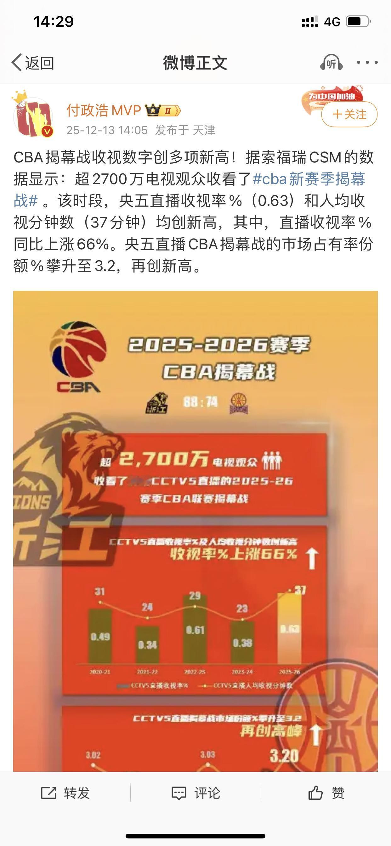 CBA忠实观众还是很多很稳的! 因为CBA揭幕战竟然创收视率新高(图一) 说真