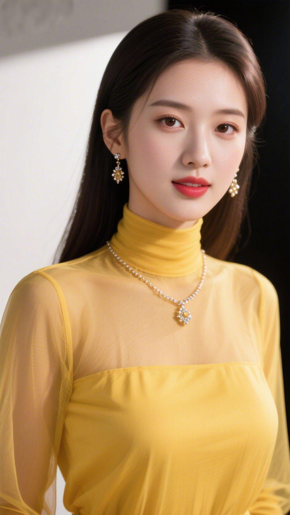 《黄衫载春光》 暖黄如揉碎的晴光,落满她的衣袂。 高领衬得颈线舒展,薄纱袖笼着轻软的风,颈间珍珠串缀着细闪,与耳坠的碎钻相衬,像把春日的暖意织进了衣装里。 抬眼时,眉梢染着浅淡的柔,唇色晕开温雅的润,没有张扬的艳,是恰好的舒展。像午后窗沿漫进的光斑,落在衣料上,便裹了层软绒绒的暖。 寻常的色调,因这松弛的姿态生动起来:发梢轻垂的弧度,衣料轻漾的纹理,连呼吸都浸着舒展的甜。 这人间的温柔,大抵是把日常的光,穿成了心上的暖,让平凡光景都裹着轻软的韵。 暖黄系穿搭 优雅质感风