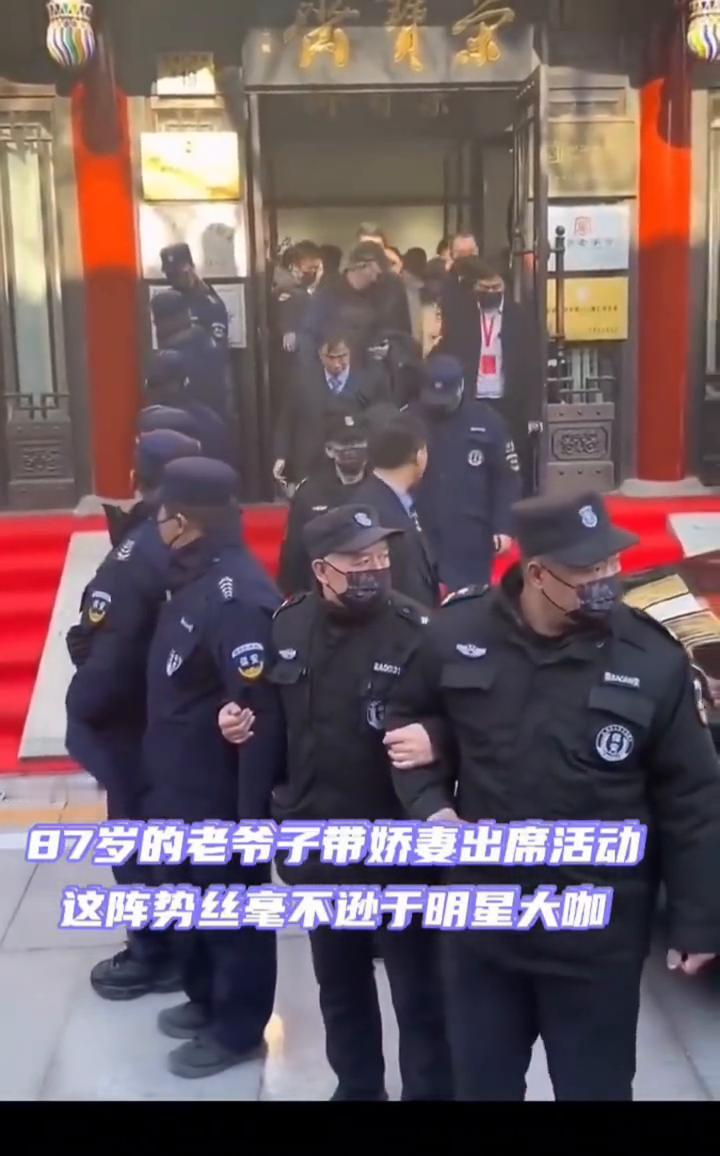 87岁的老爷子带娇妻出席活动,这阵势丝毫不逊于明星大咖。 87岁的老爷子带娇妻出