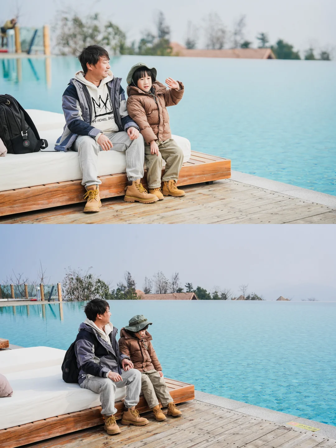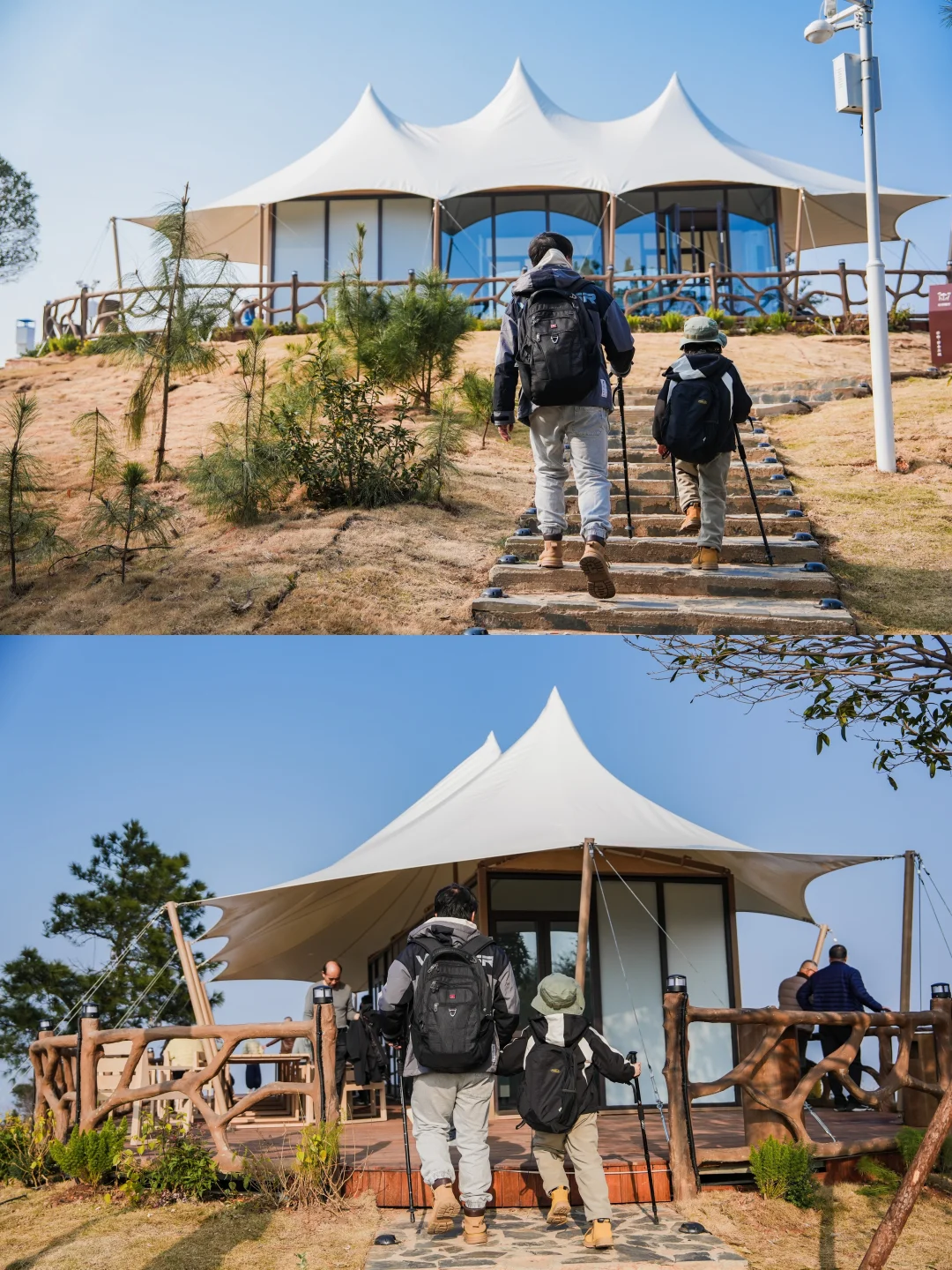 ✔️山顶温度低,风很大,建议穿羽绒服