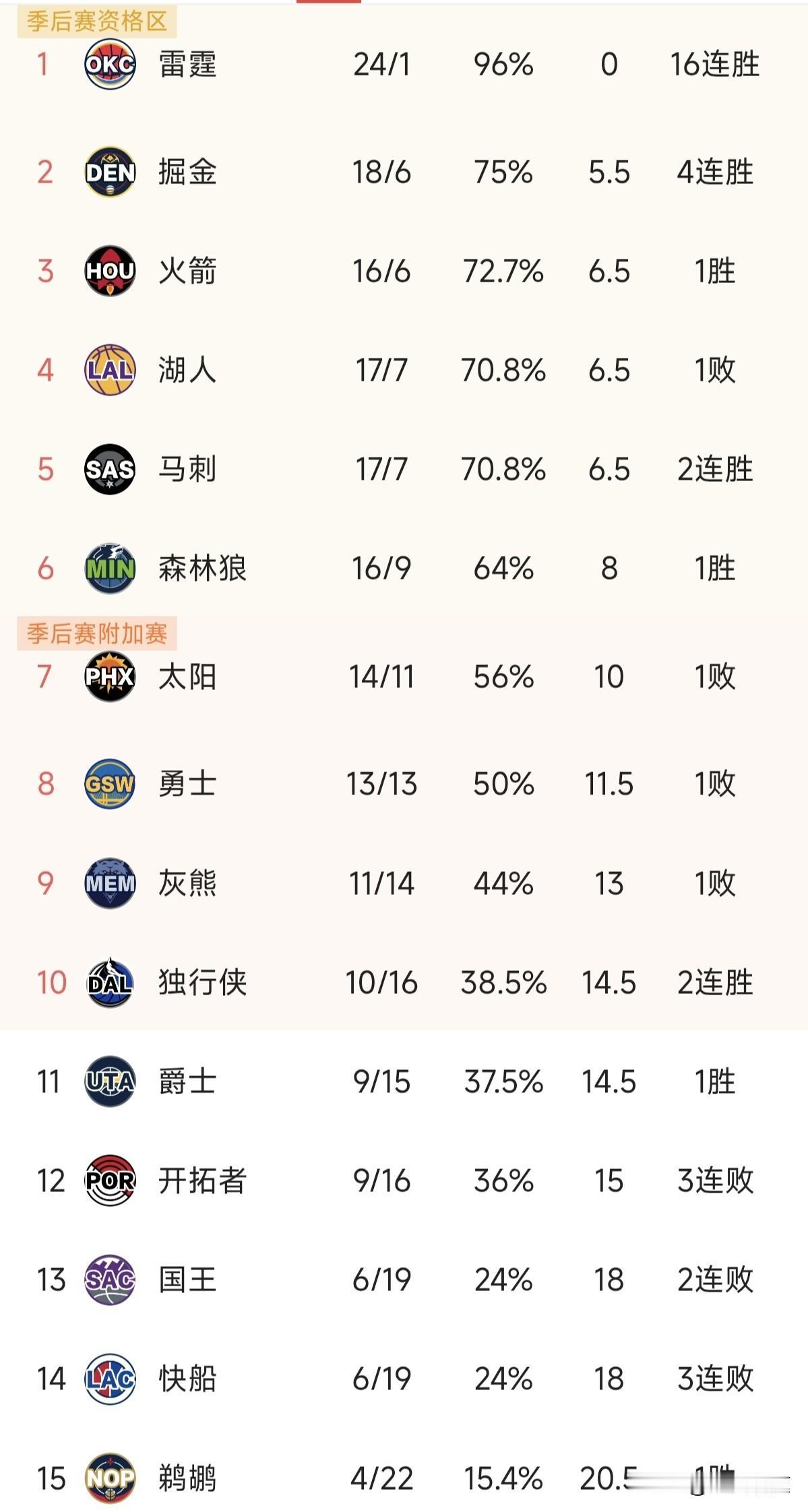 西部现在才开始角逐季后赛名额,前面的赛程都是在演的,像小牛。爵士,灰熊这些现在才开始发力