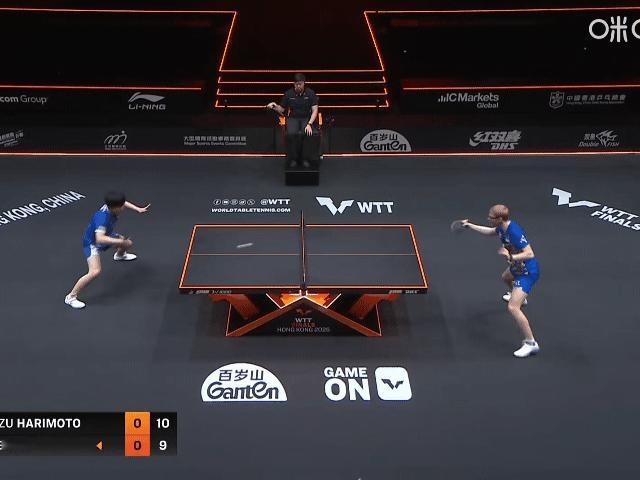 小勒布伦VS张本智和第一局,鹰眼挑战成功!2025WTT总决赛
